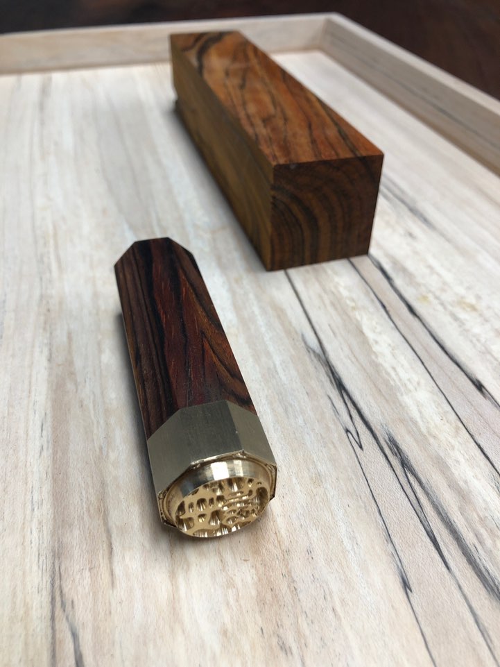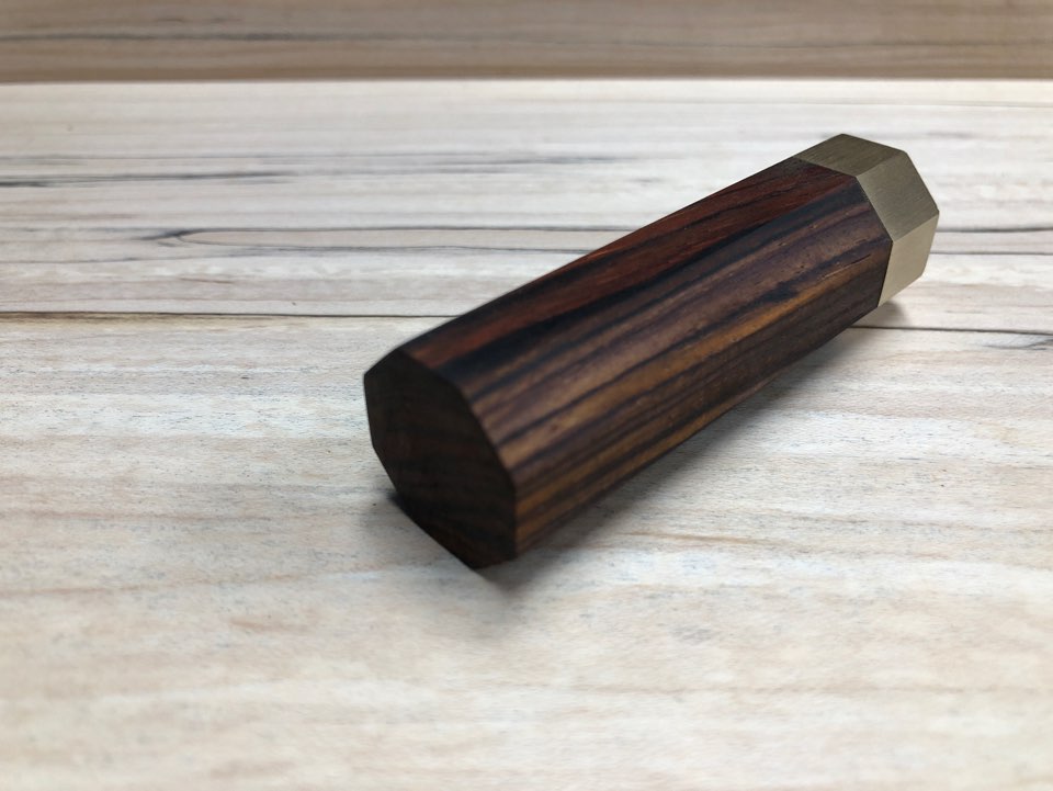 8각형 디자인의 황동+코코볼로 원목 인감도장입니다.