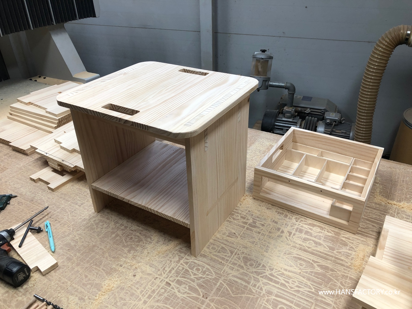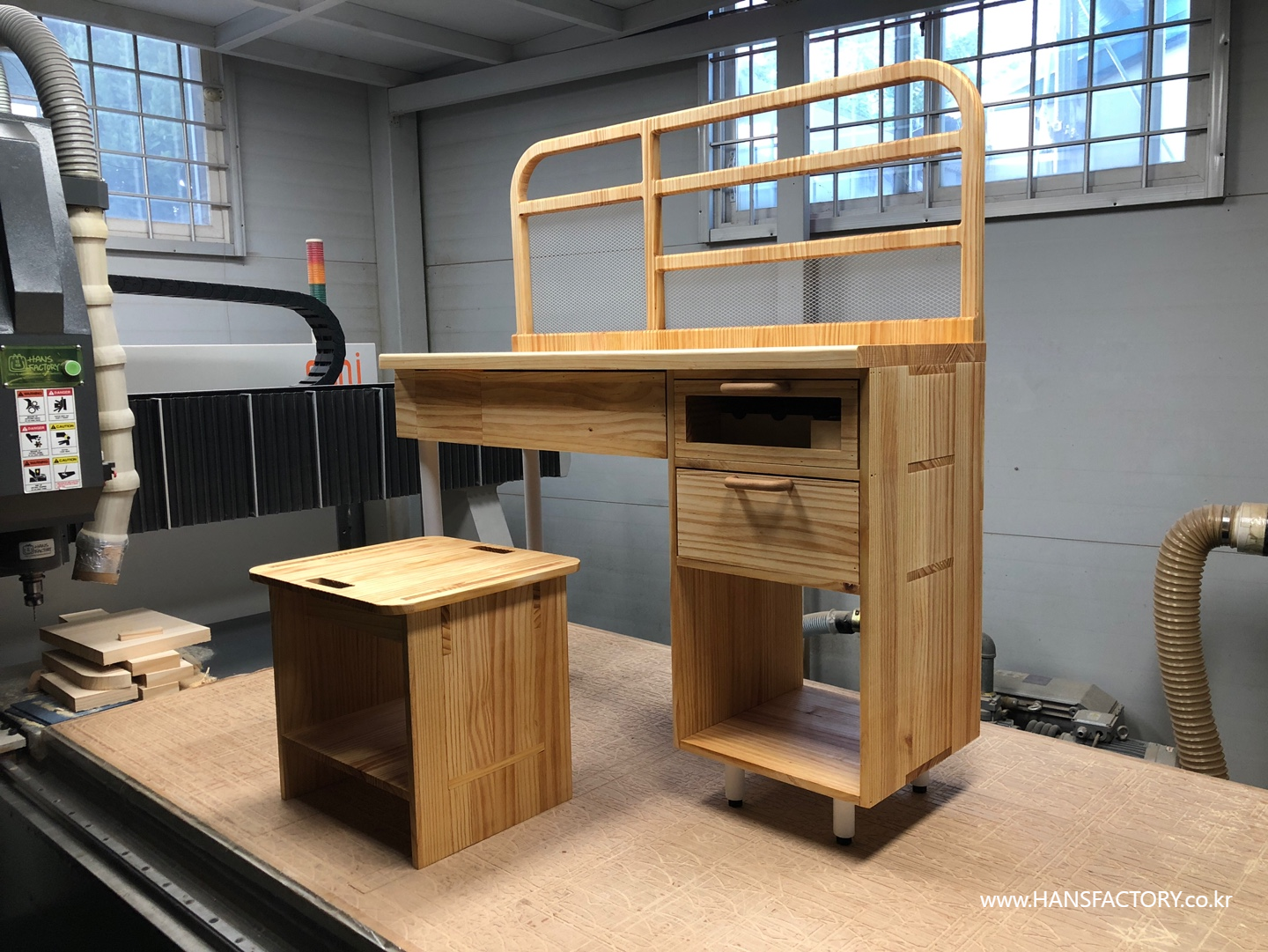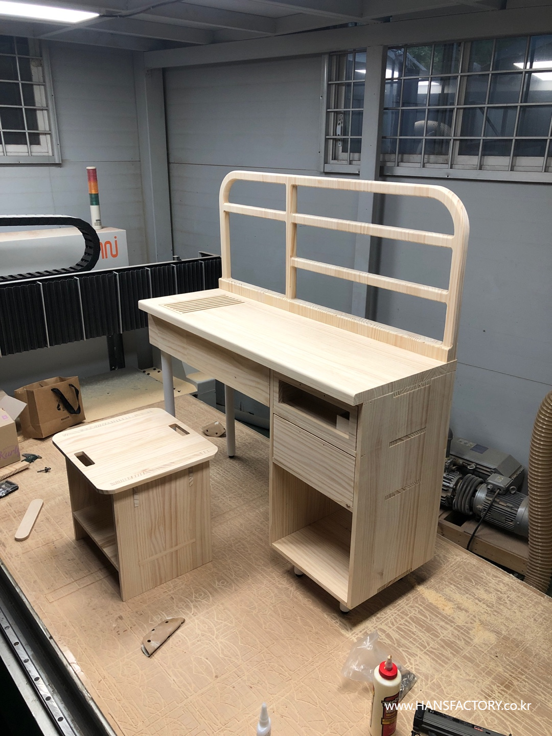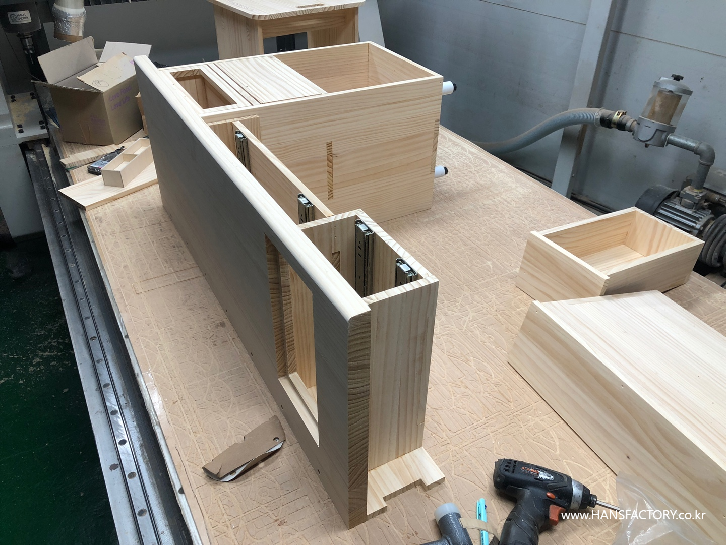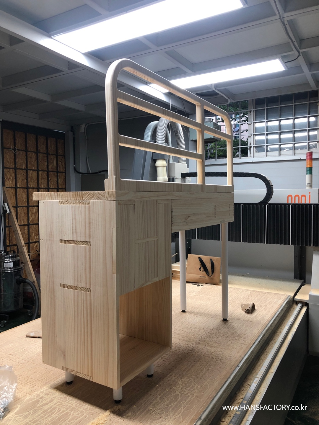 상판과 서랍의 조립, 하단부와 금속 부품의 결합이 설계한 대로 차근차근 결합되고 있고요