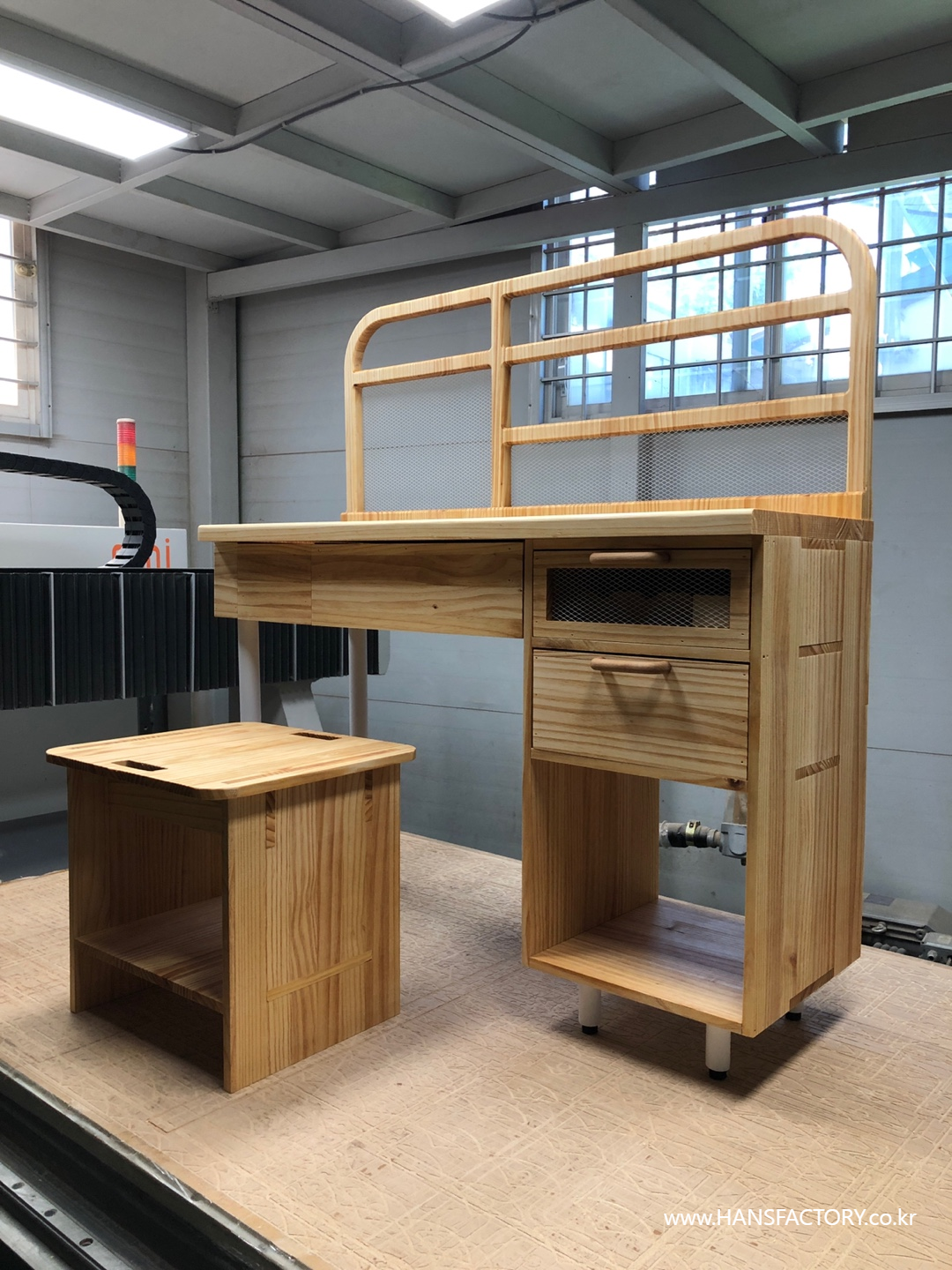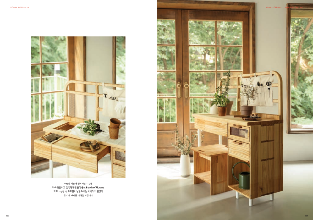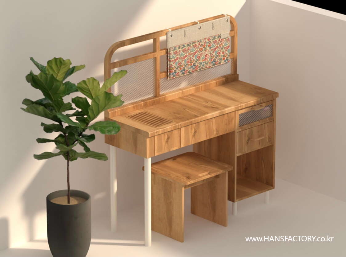 목재는 소나무를 사용하였고, 다리 부분에는 금속을 가공한 후 분체 도장을 하였어요....