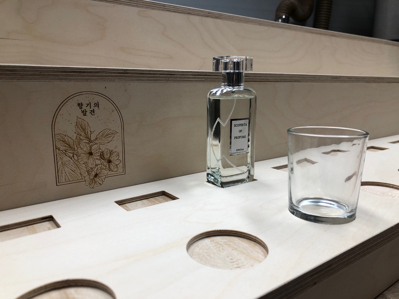 시향대 한쪽에는 " 향기의 발견 " 로고를 이쁘게 새겨드렸습니다.