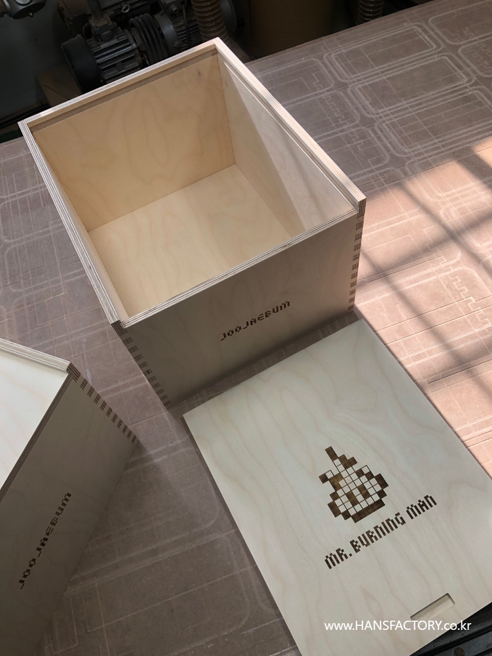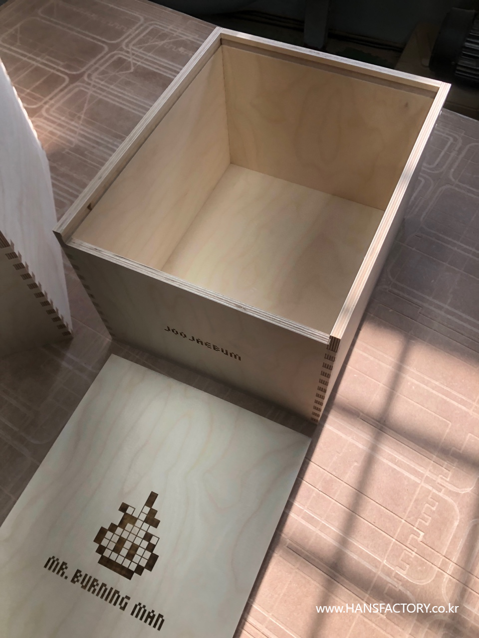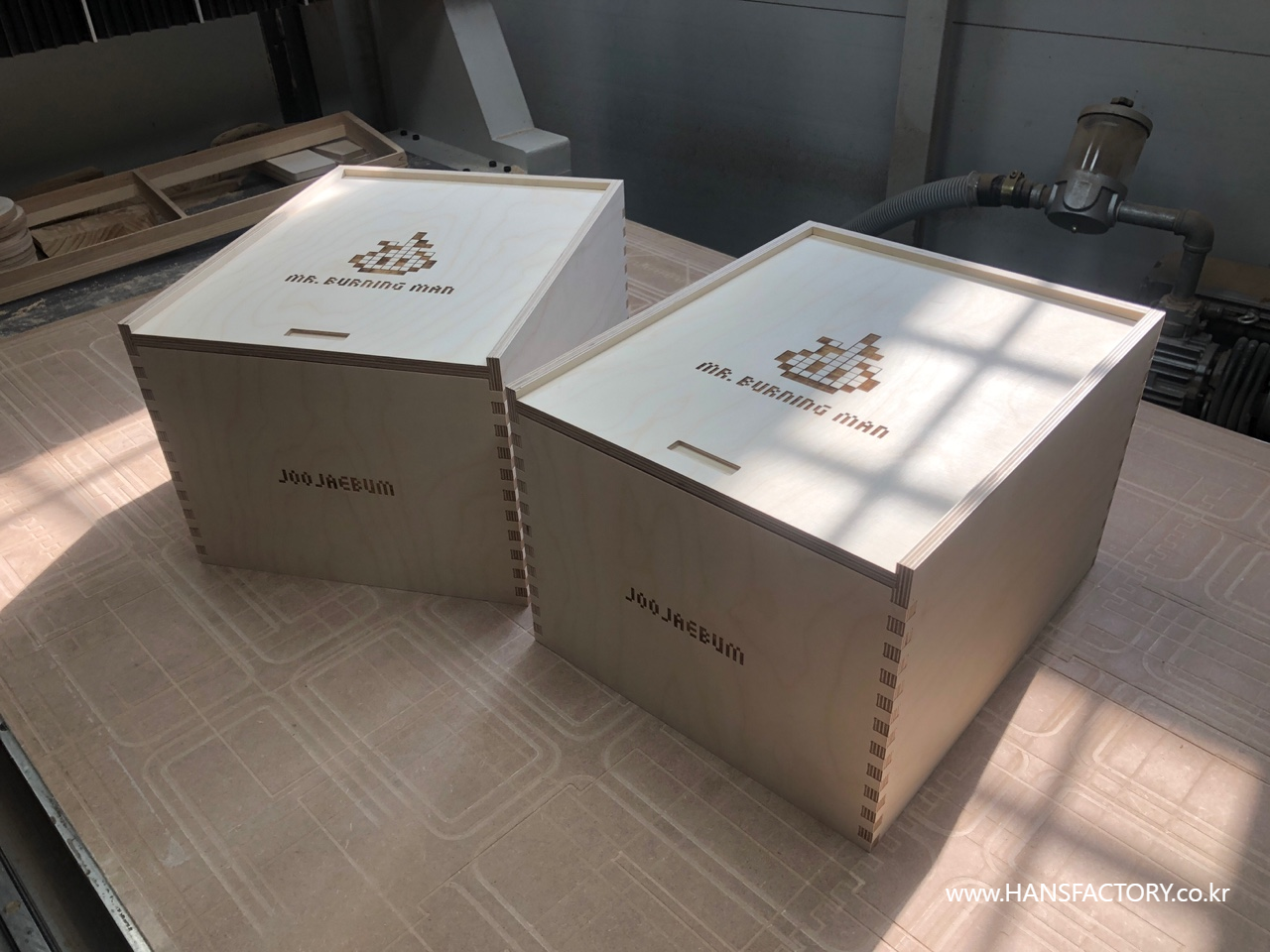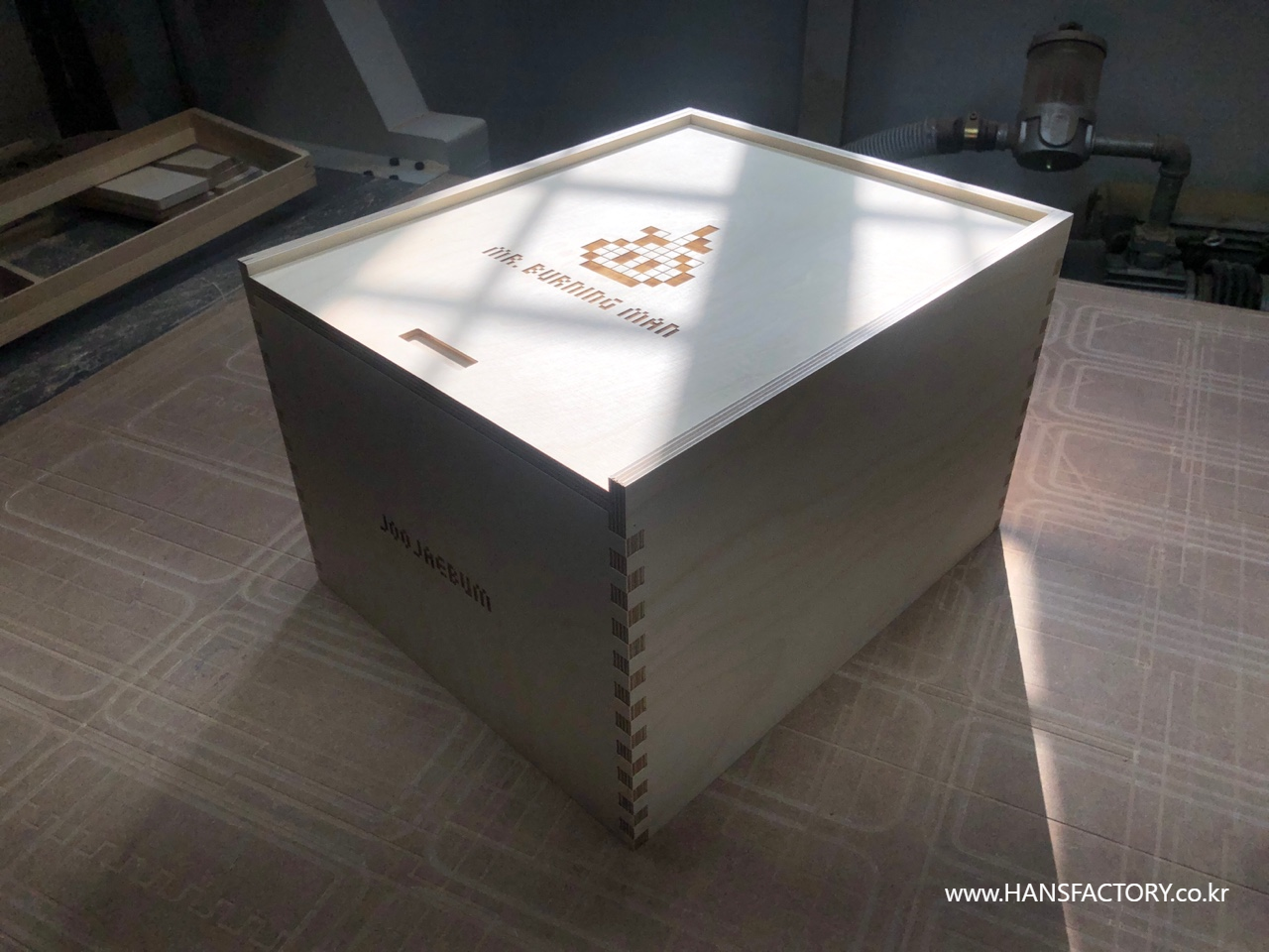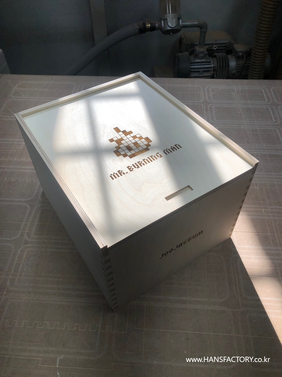 "미스터버닝맨" 을 담을 목재 케이스 제작에 돌입합니다.