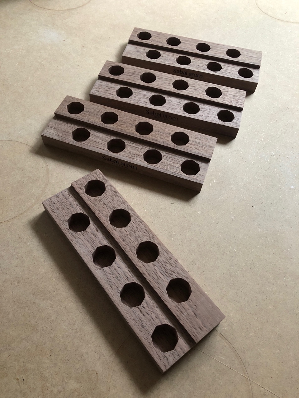 아로마 오일 우드트레이와 제품 설명 패널을 의뢰받았어요~