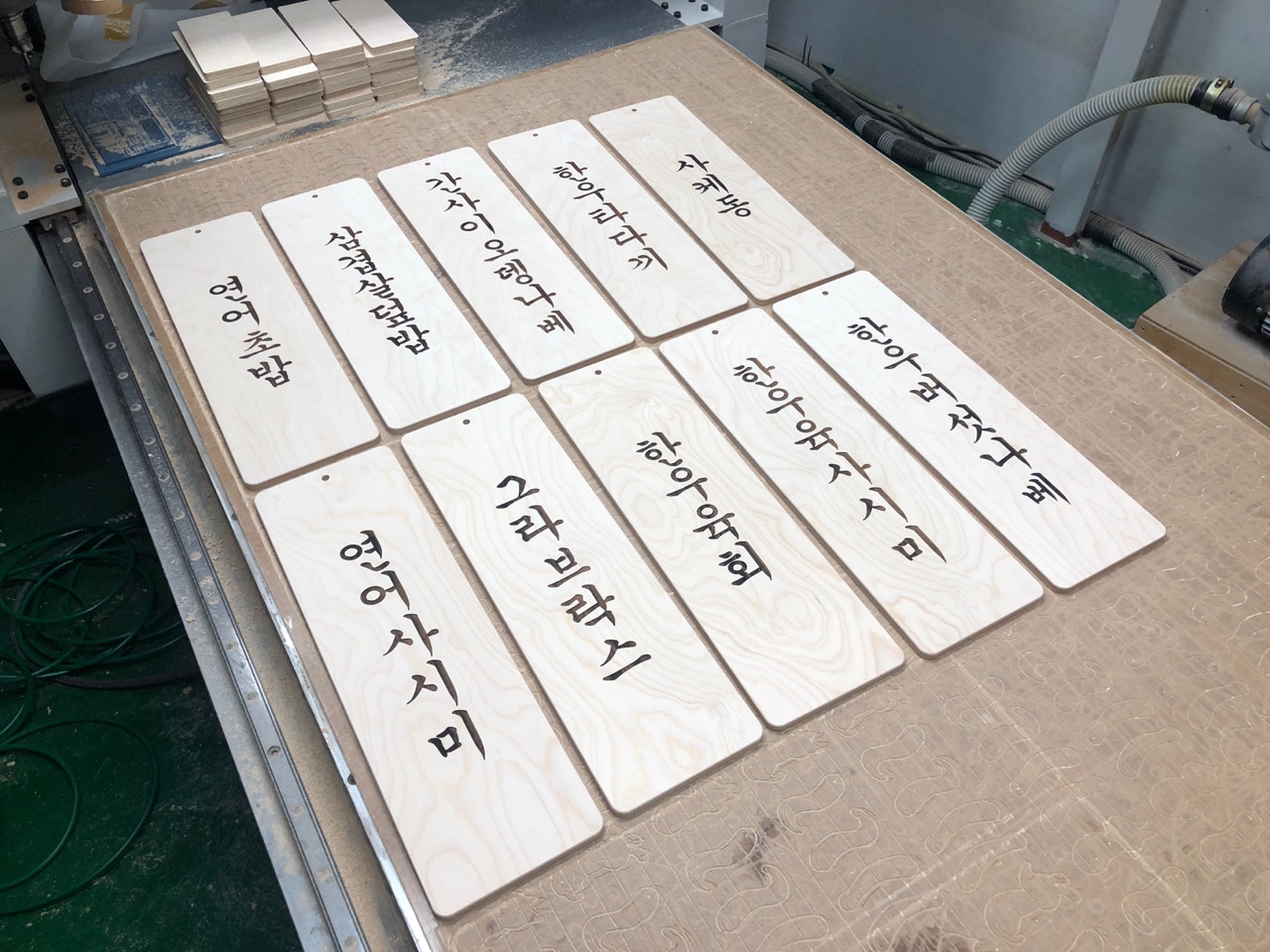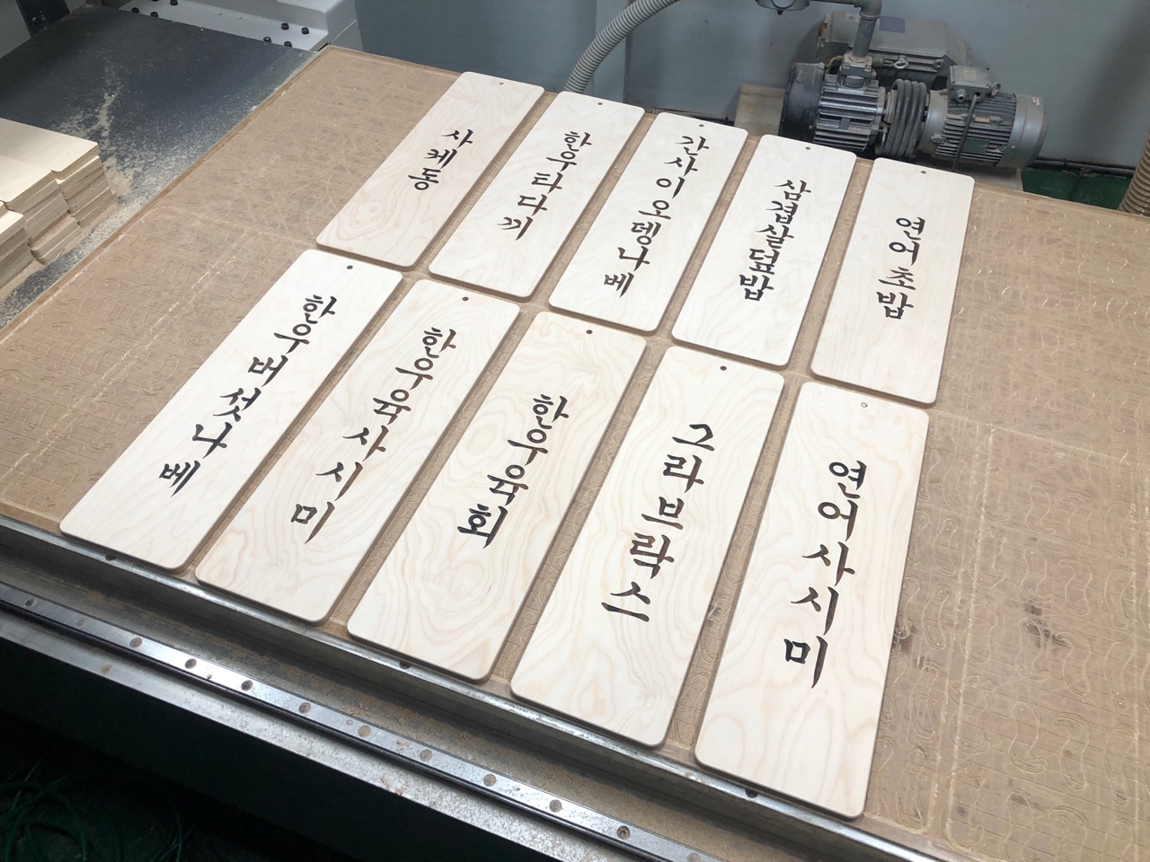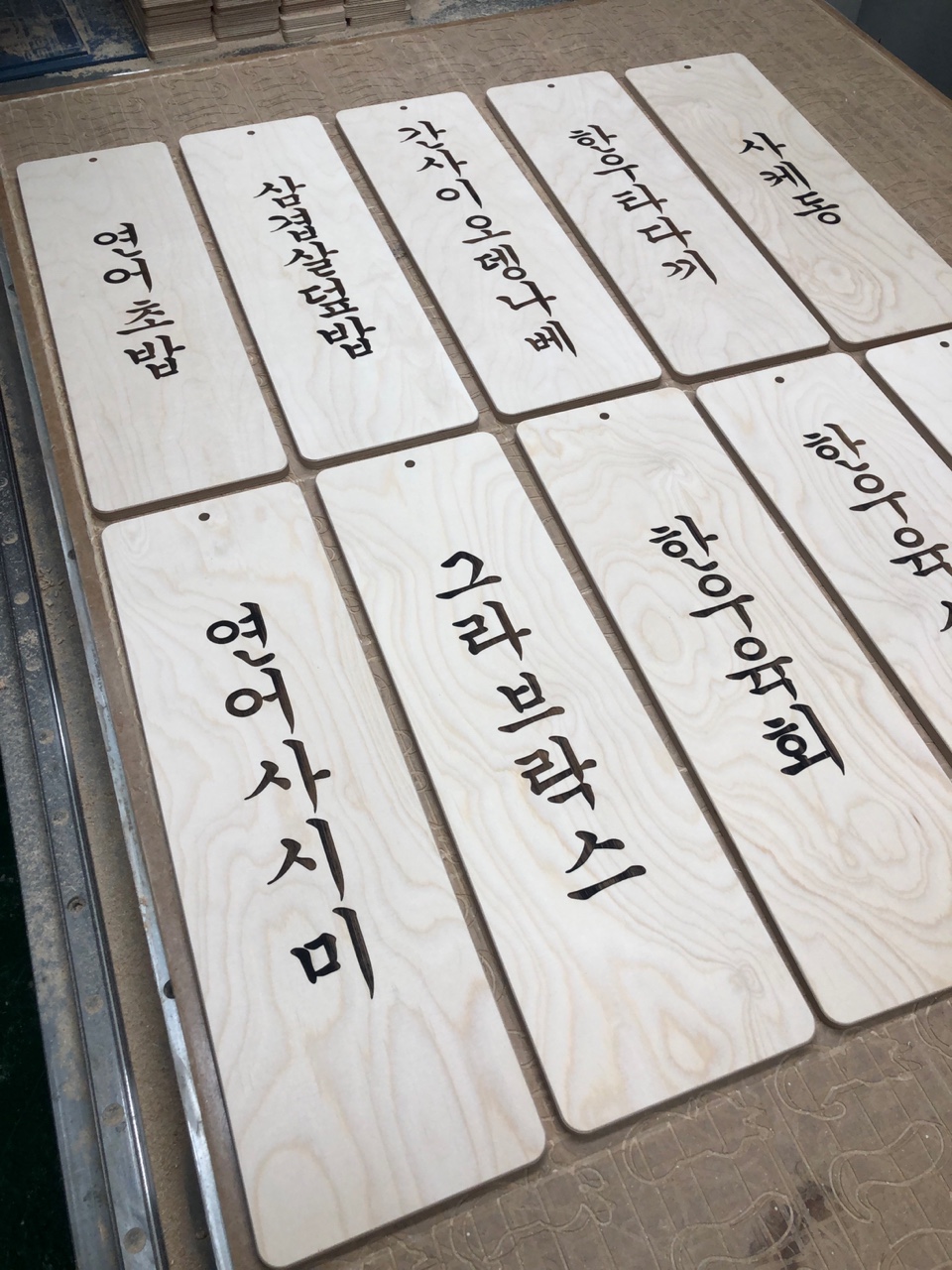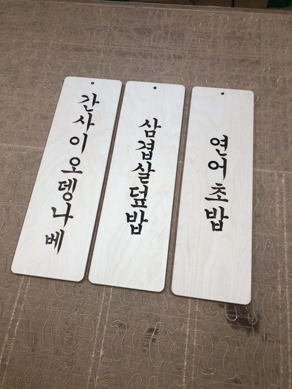 레이저 머신으로 메뉴 내용을 새겨 주었습니다.