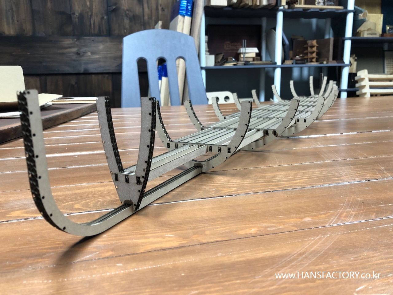 카누의 골격 부품들을 준비했고요~