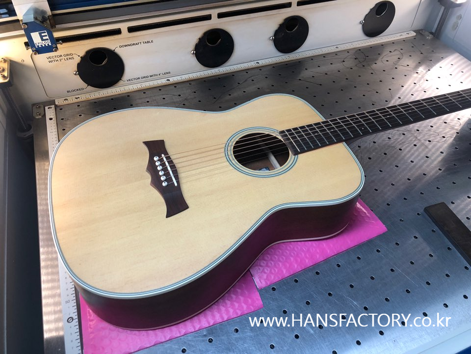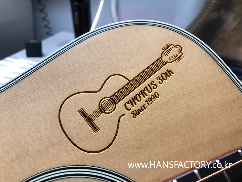 어쿠스틱 기타에 로고를 새겨달라는 의뢰였습니다.