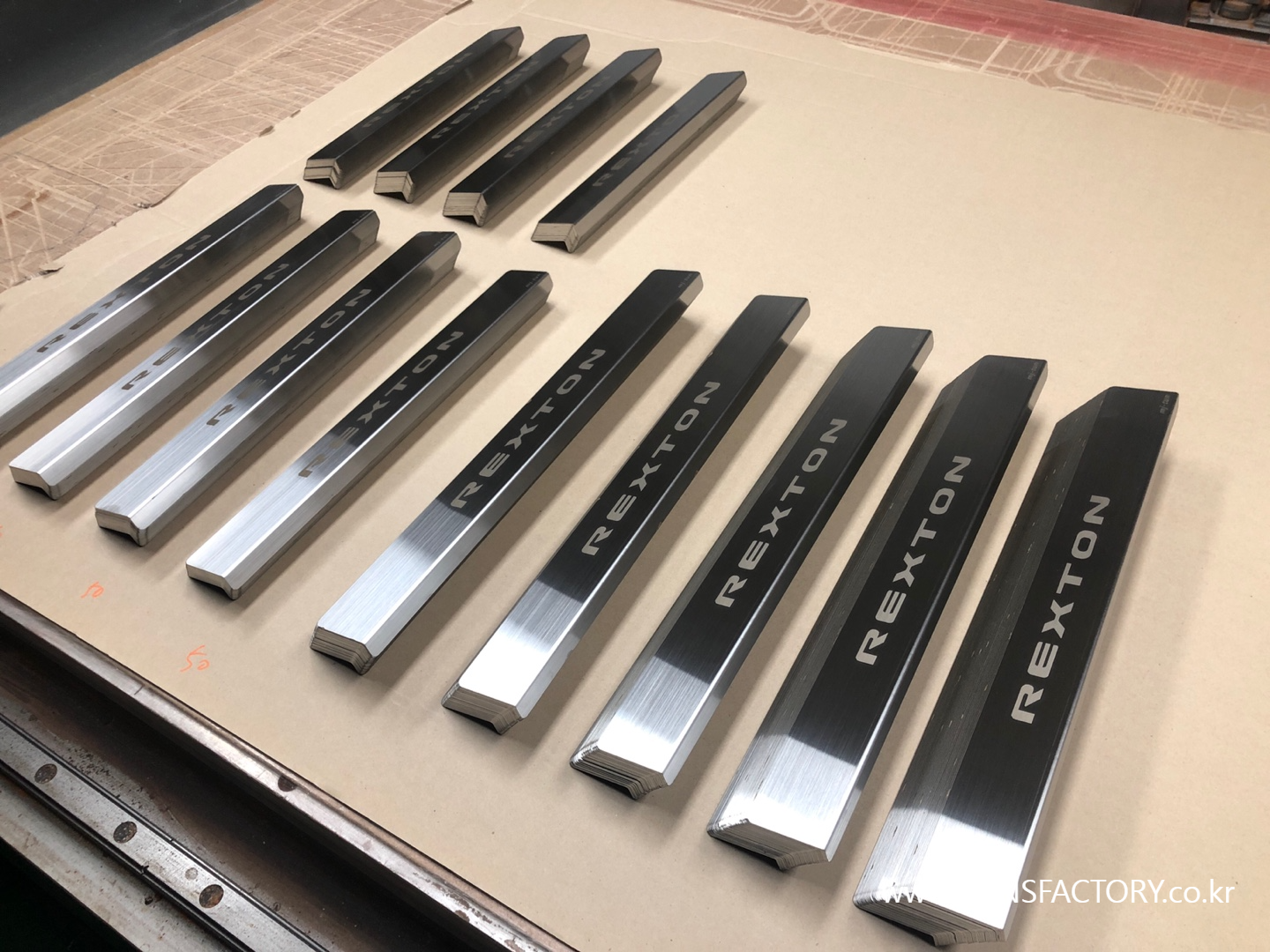 SUS (스텐레스) 도어 스커프에 금속 각인 작업입니다.