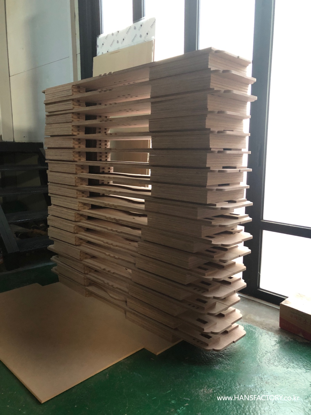 CNC 가공으로 상판, 다리, 연결부... 각 파츠들을 가공합니다.