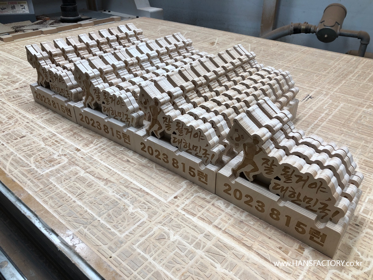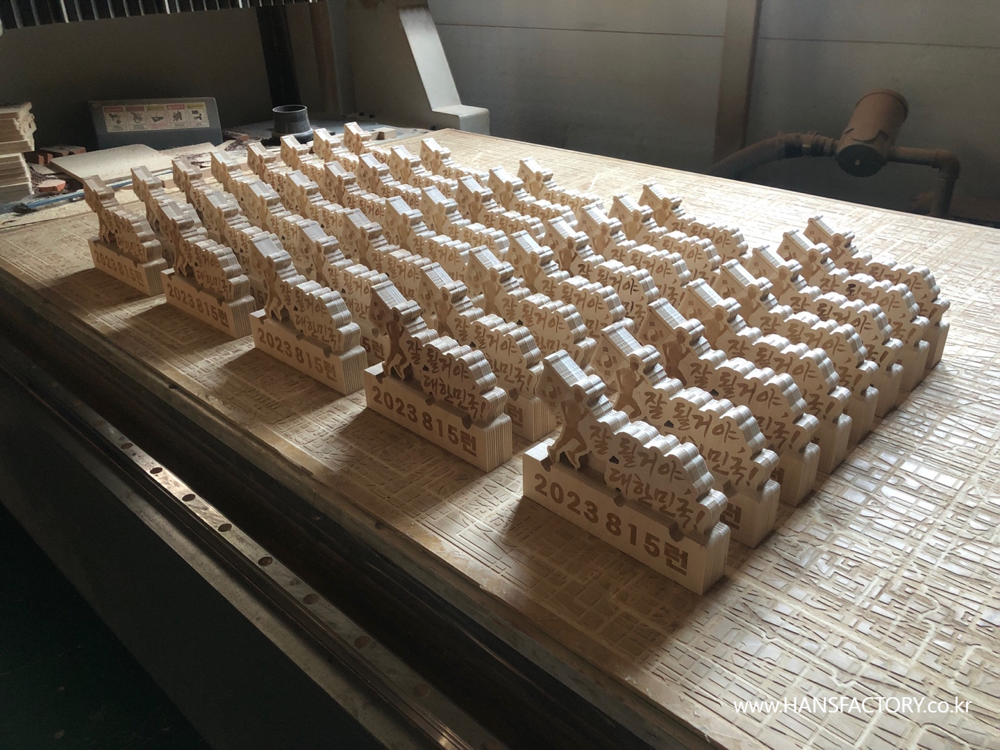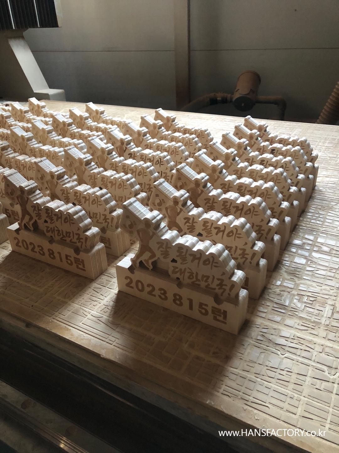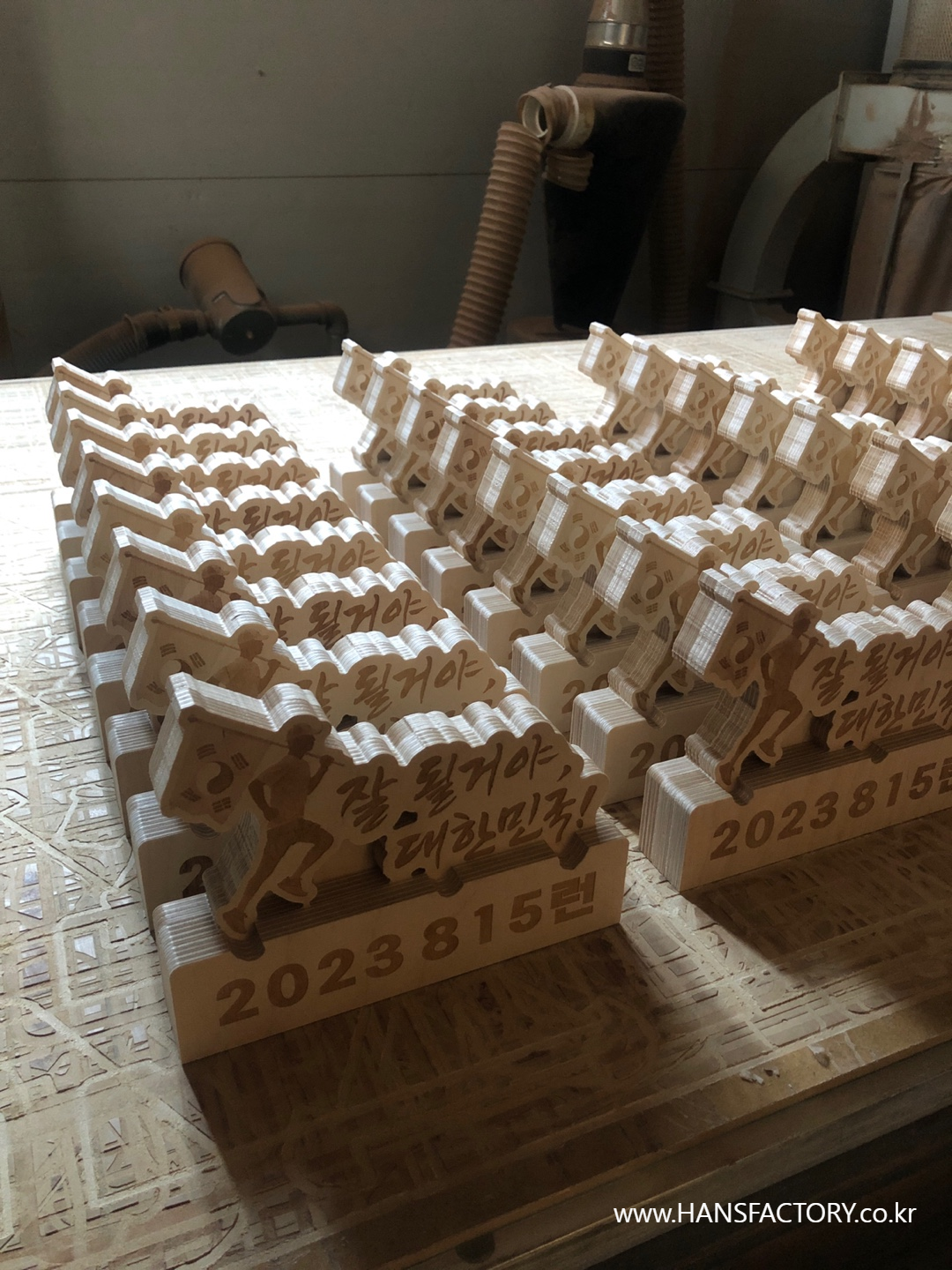 목재를 다듬고~ 재단하고~ 내용을 각인하고~ 조립해서~