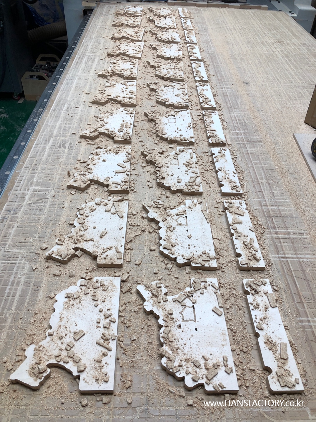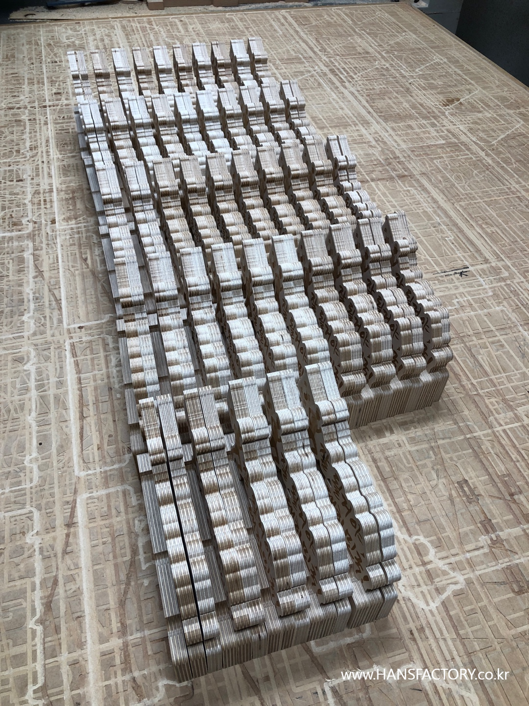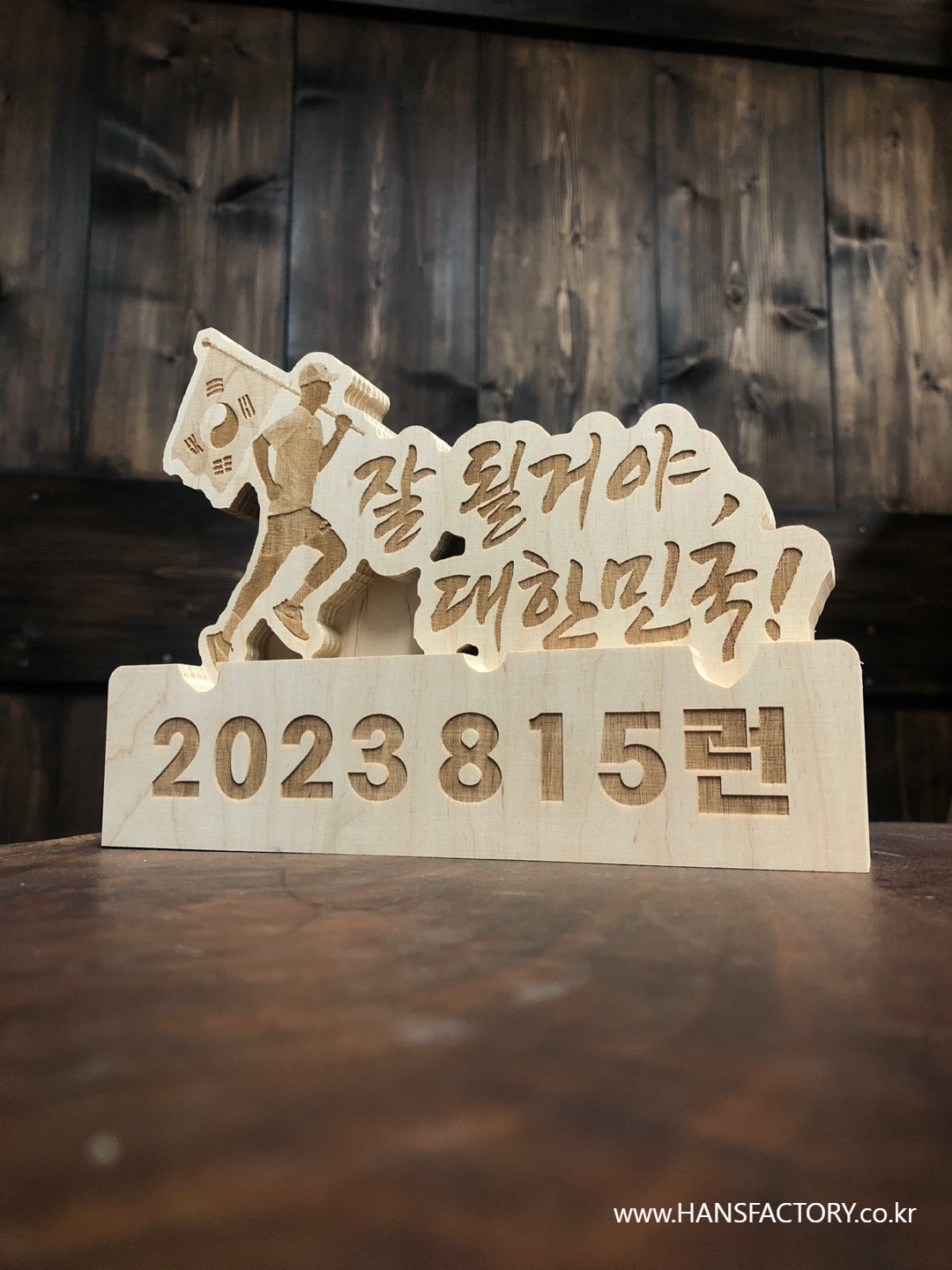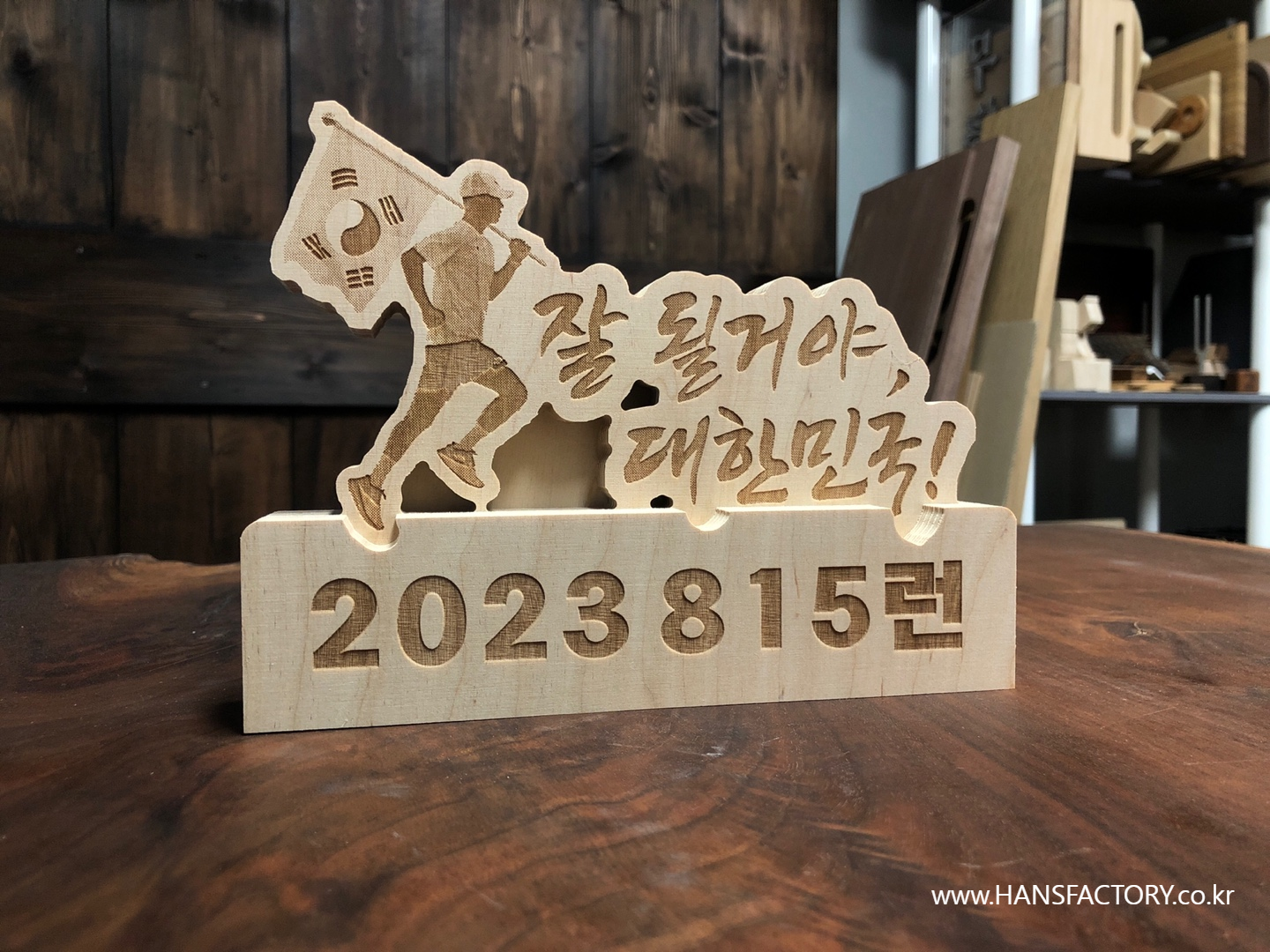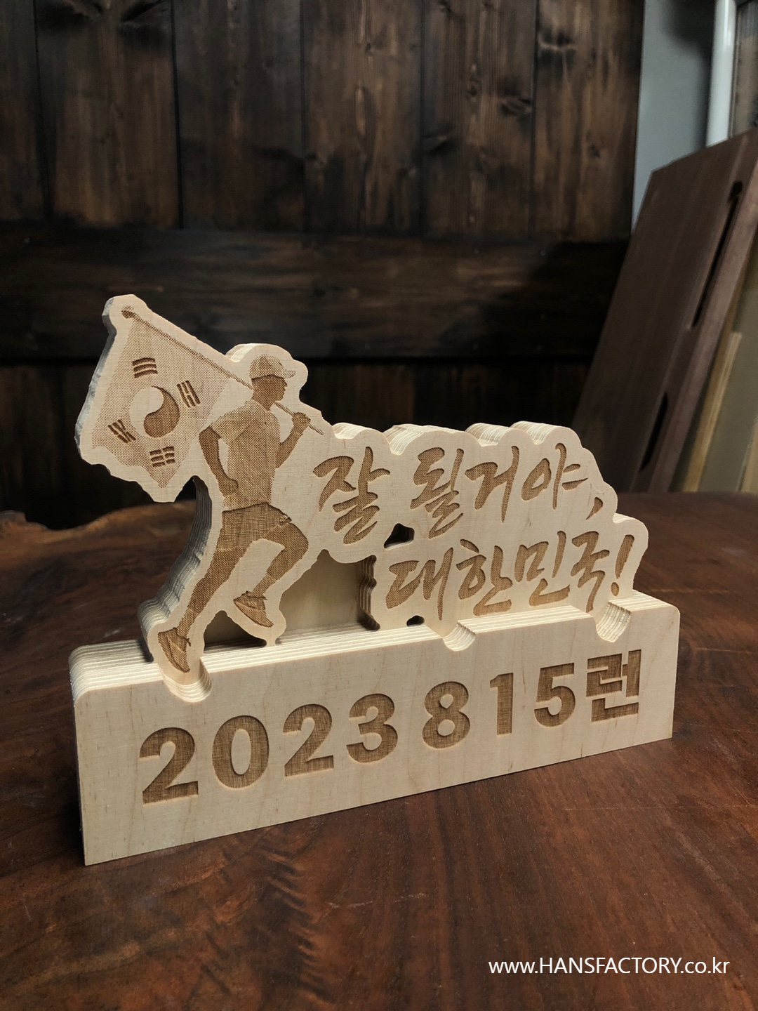 목재를 다듬고~ 재단하고~ 내용을 각인하고~ 조립해서~
