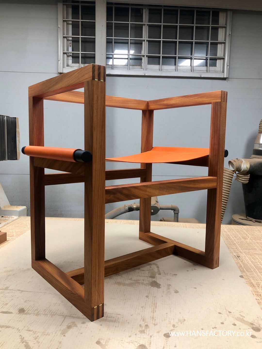 앉는 부분은 가죽으로 구성하고, 오크 목봉 + 가죽 구조를