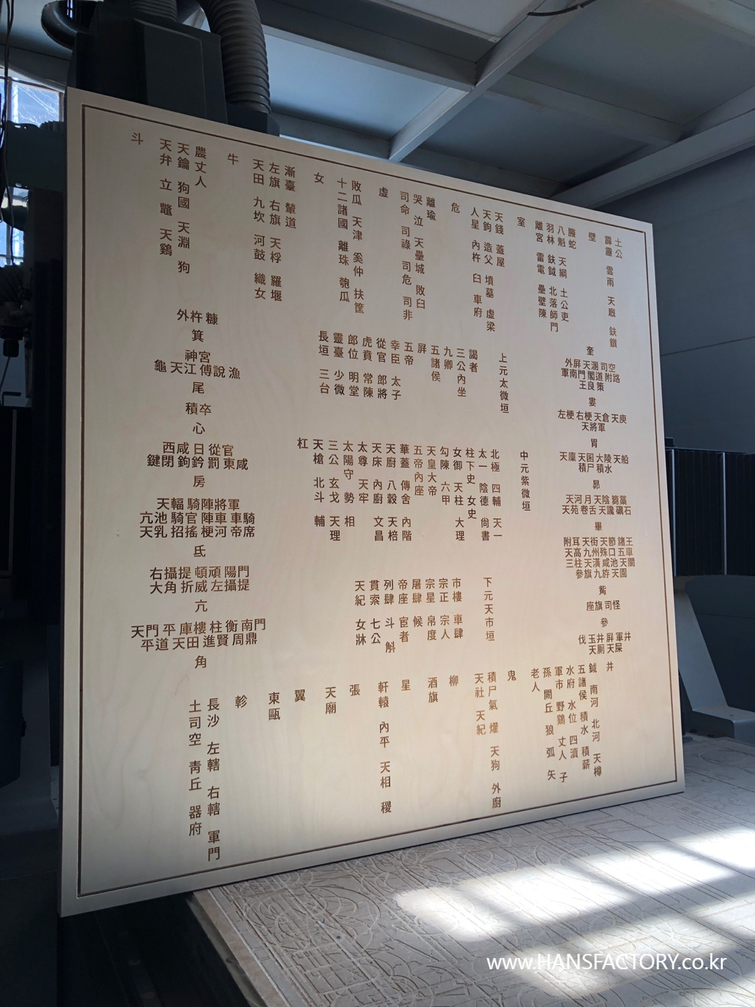 밤하늘 떠 있는 별자리를 글로 표현해서 목판에 새겨 보았는데요