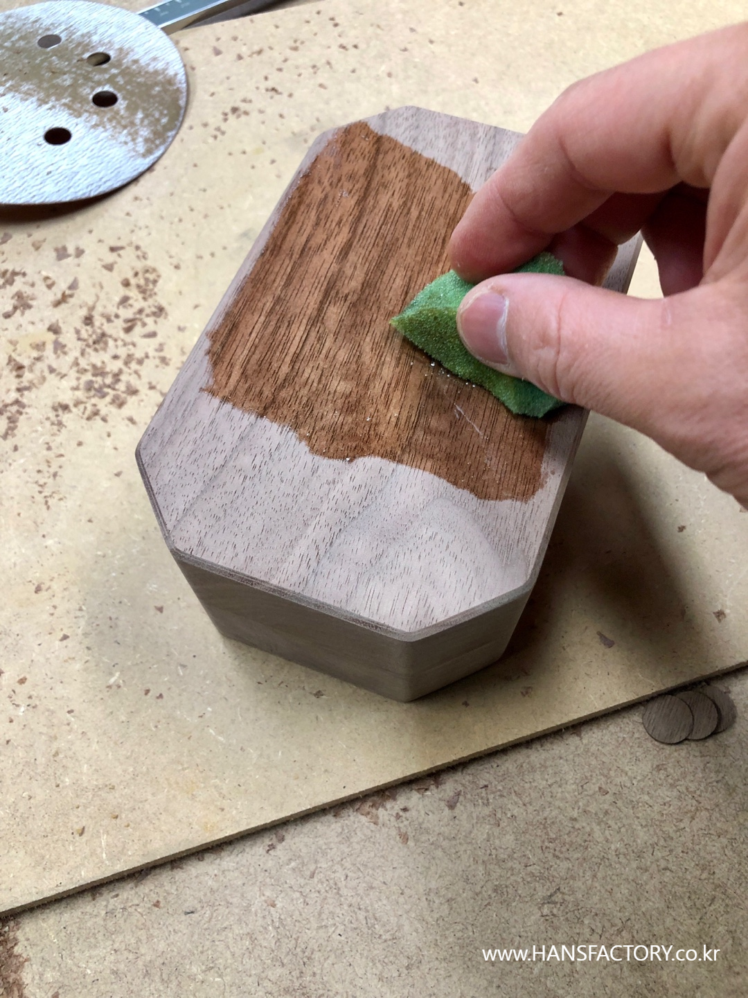 역시 천연오일 듬뿍 먹여서 월넛 원목의 색감이 이쁘게~ 나왔습니다.