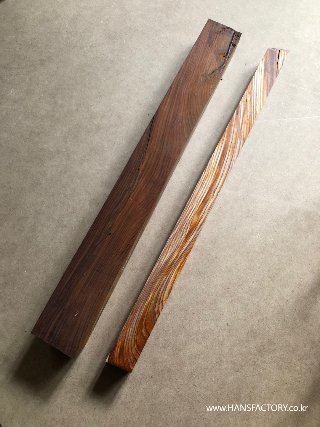 두께 50mm 이상 깨끗한 원목을 찾으러 거래하는 목재상을 다 뒤지고 다녀서 찾아냈어요