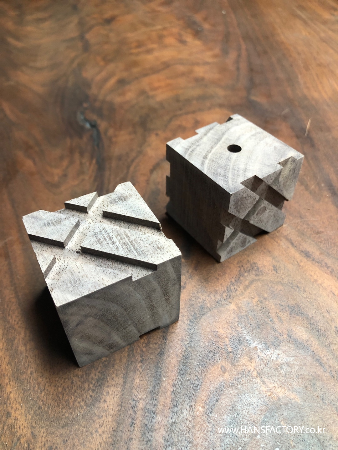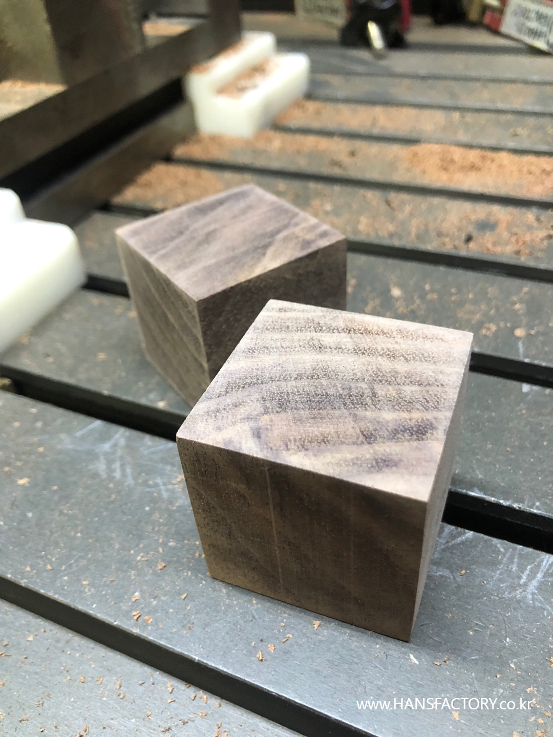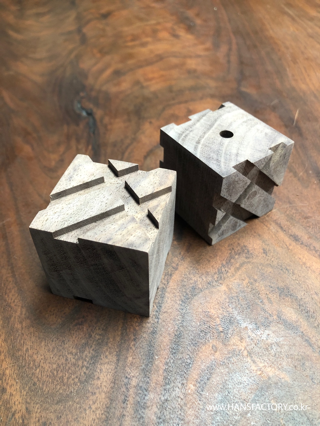 먼저 40mm 크기로 월넛 큐브 형태로 만들어 줍니다.
