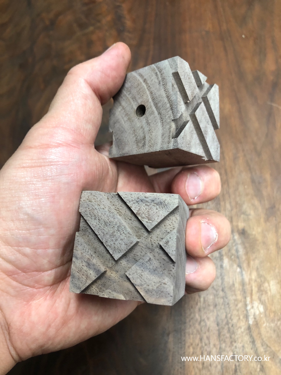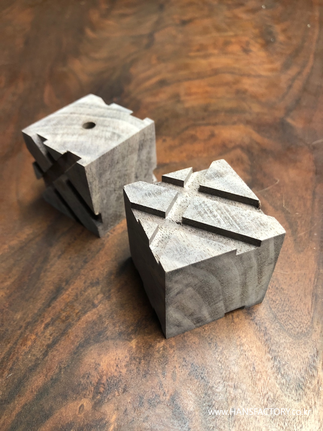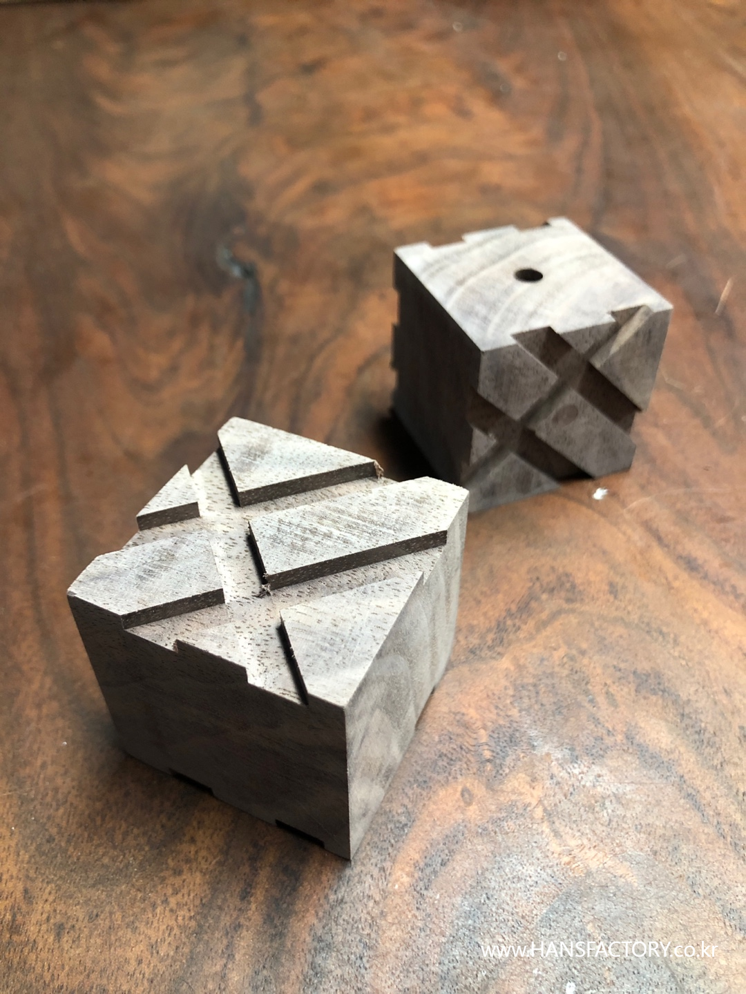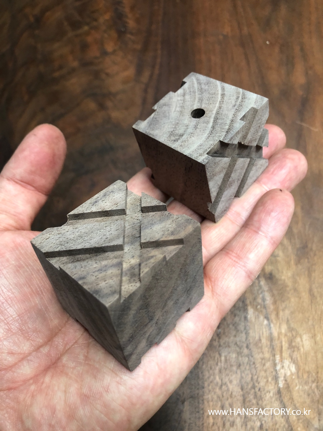 먼저 40mm 크기로 월넛 큐브 형태로 만들어 줍니다.