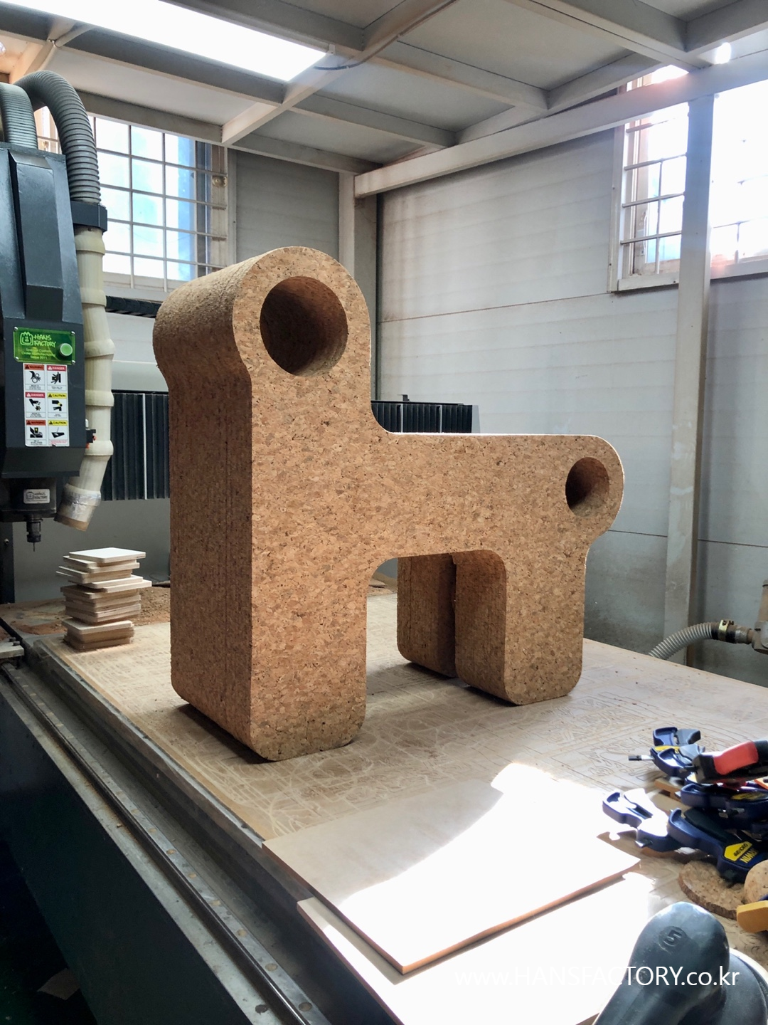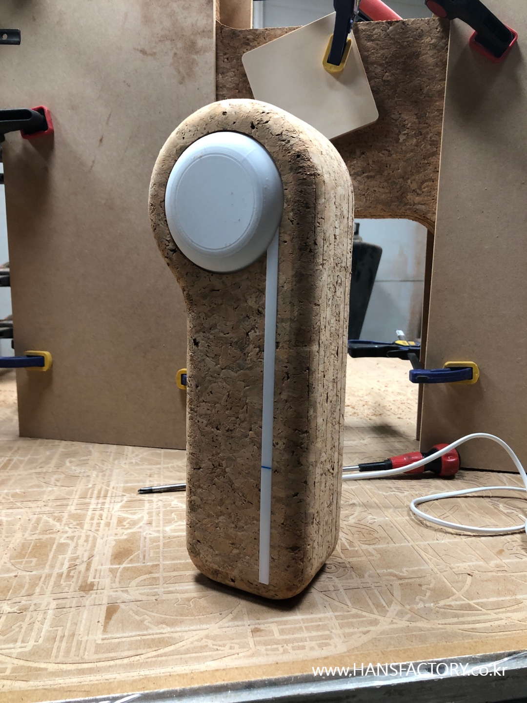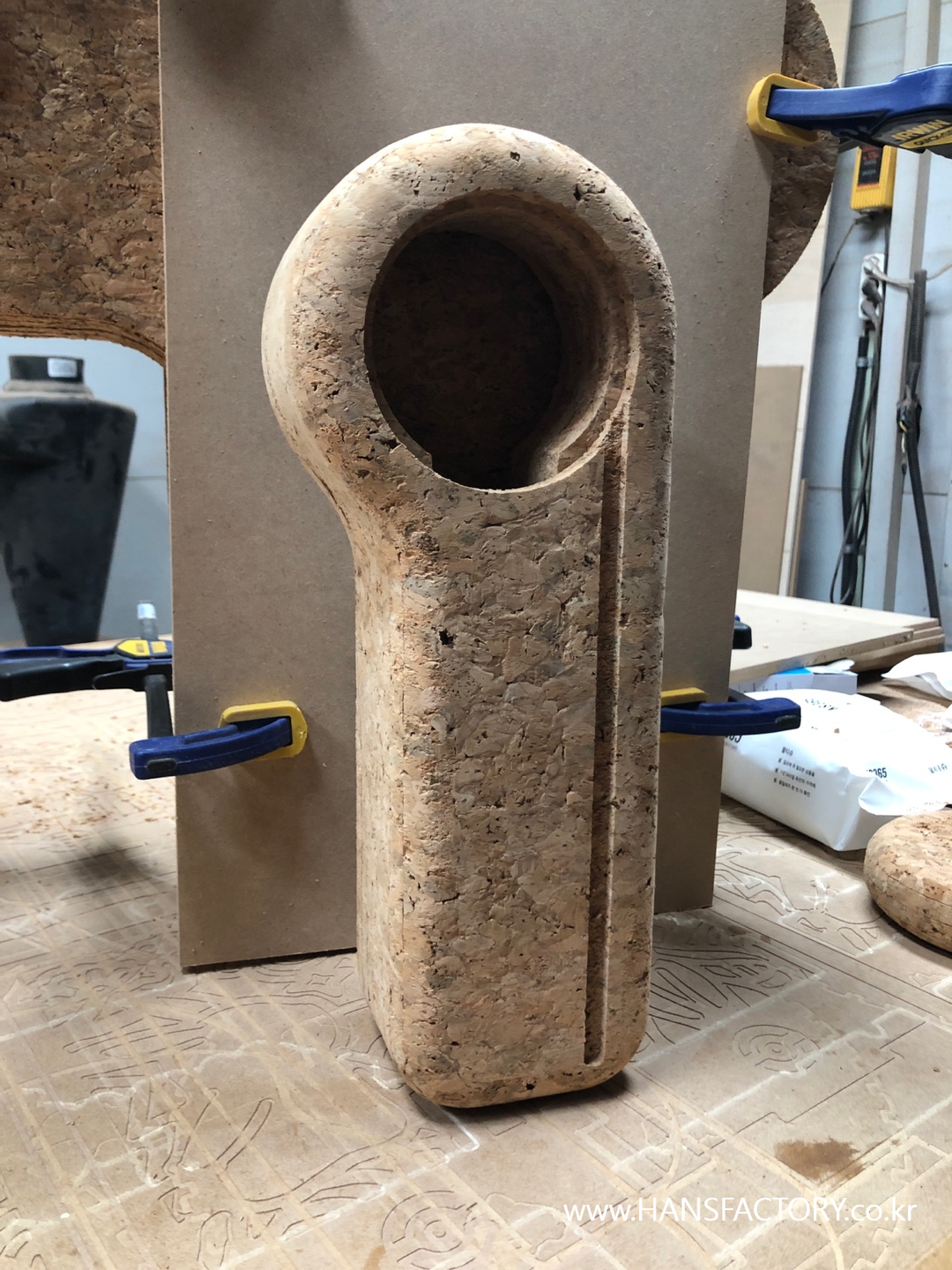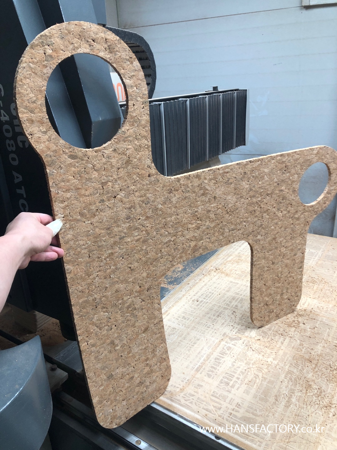 코르크 자재는 CNC가공으로 각 파츠를 준비하고