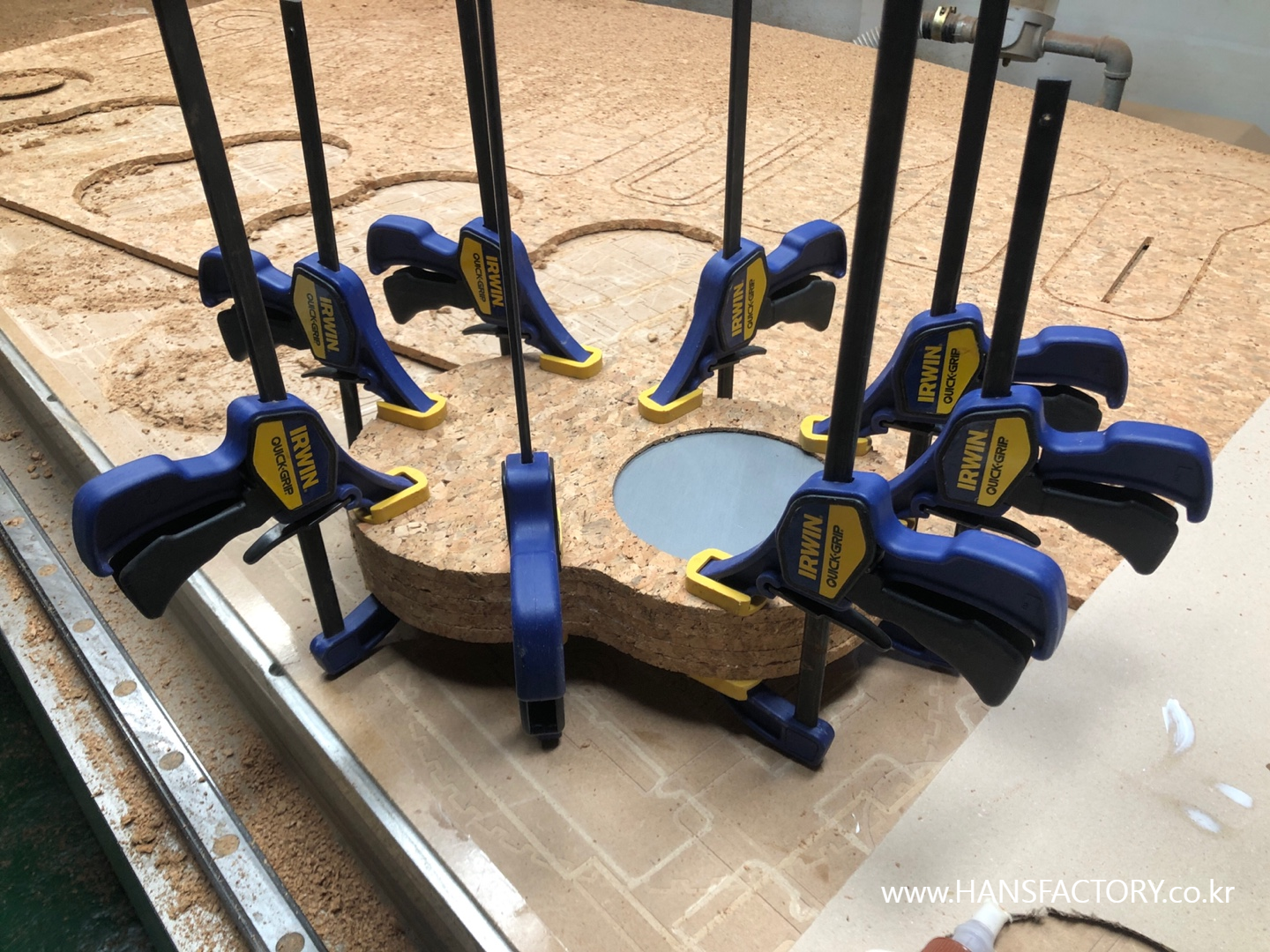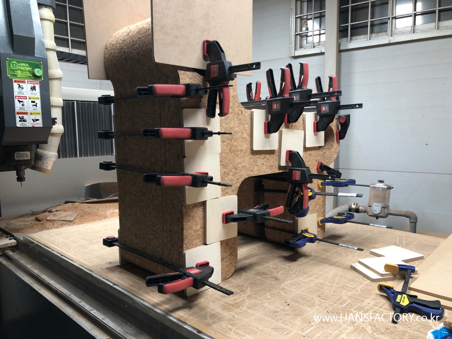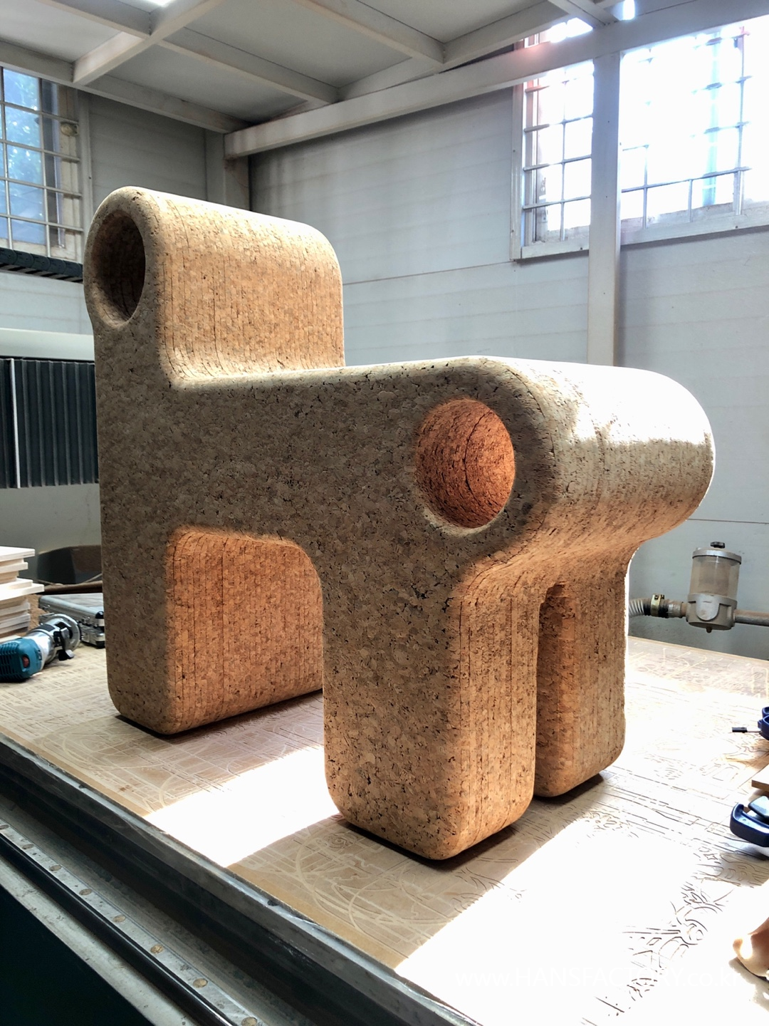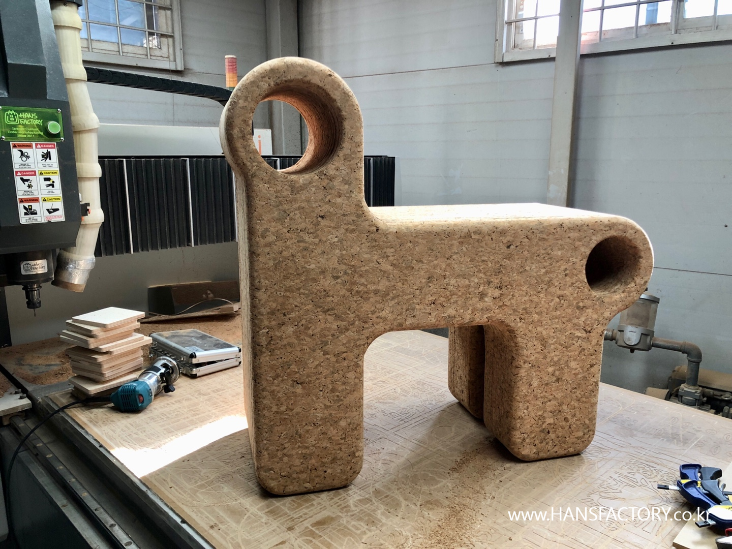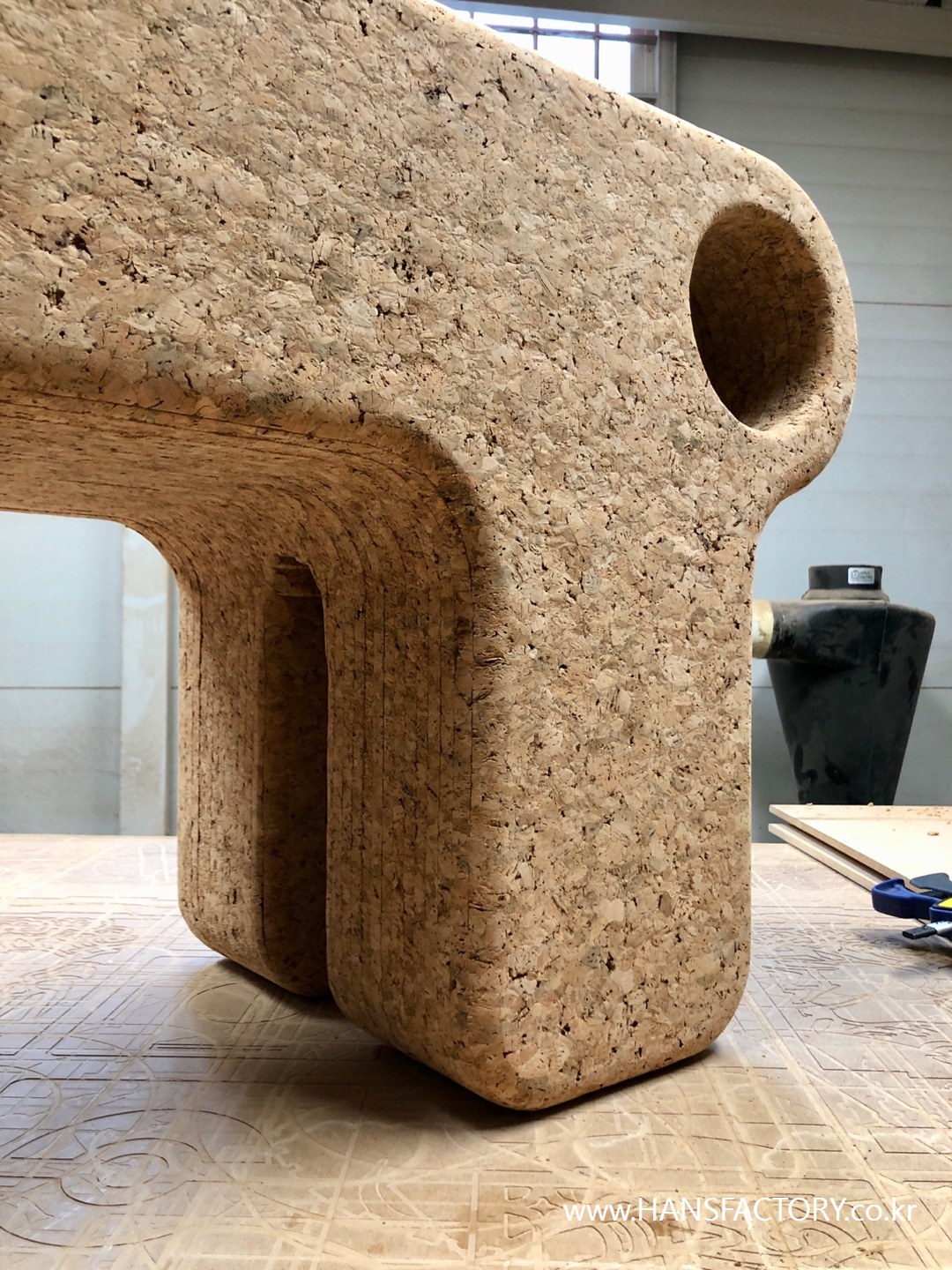 코르크 자재는 CNC가공으로 각 파츠를 준비하고