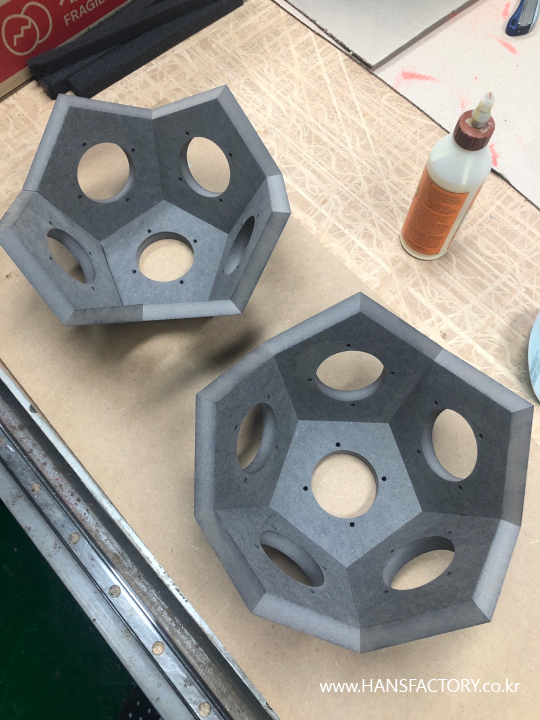 그래서 5 각형 접합부 각도를 정확히 계산해서 CNC가공해 주었습니다.