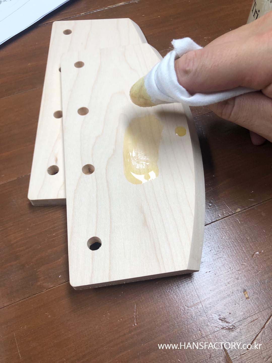마감 작업은 원목 도마에 사용하는, 먹어도 될 만큼 안전한 천연오일을 사용했어요