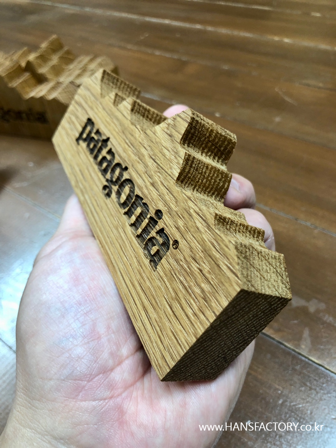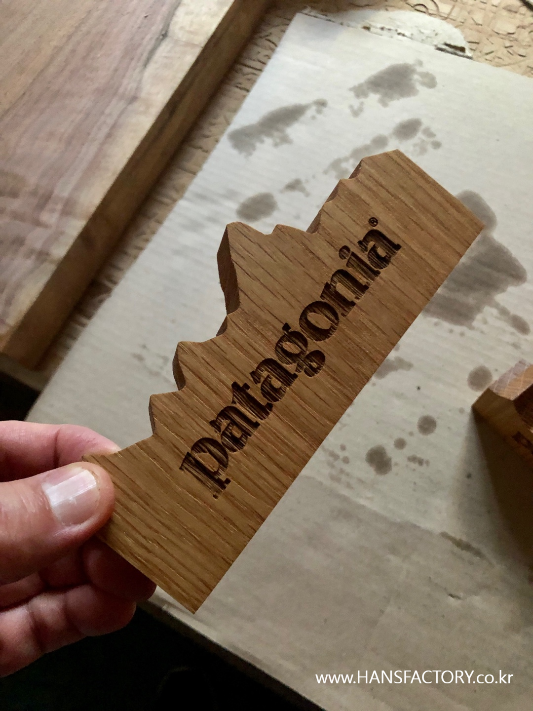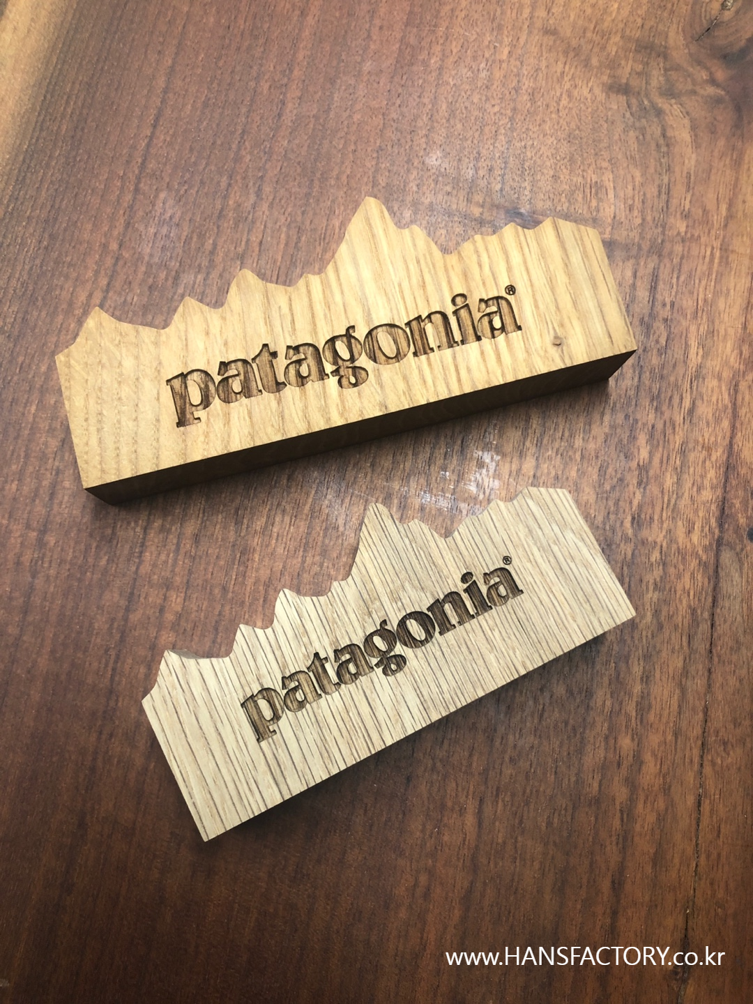 고정밀 레이저 머신으로 파타고니아 로고를 조각해 주었습니다.