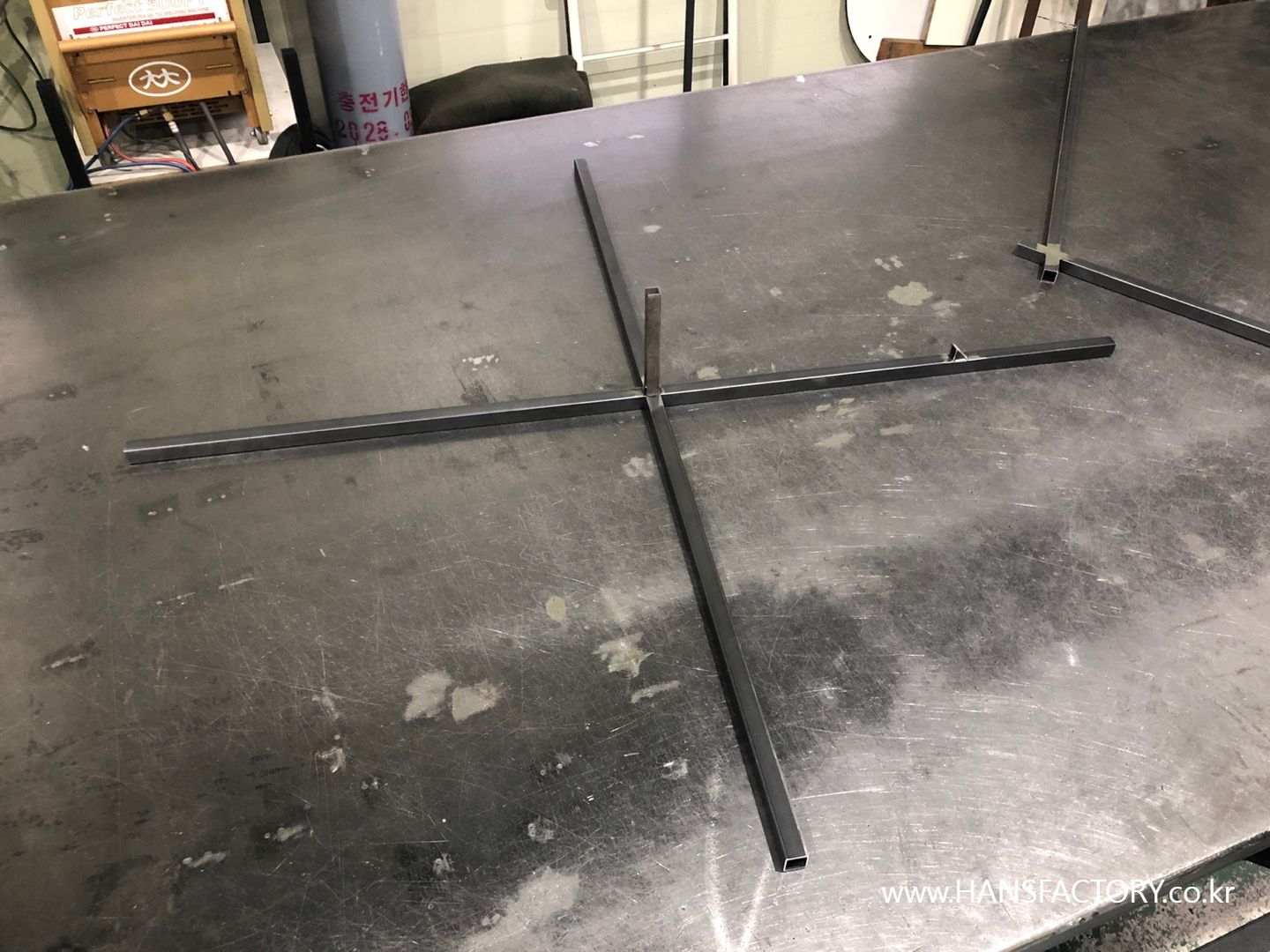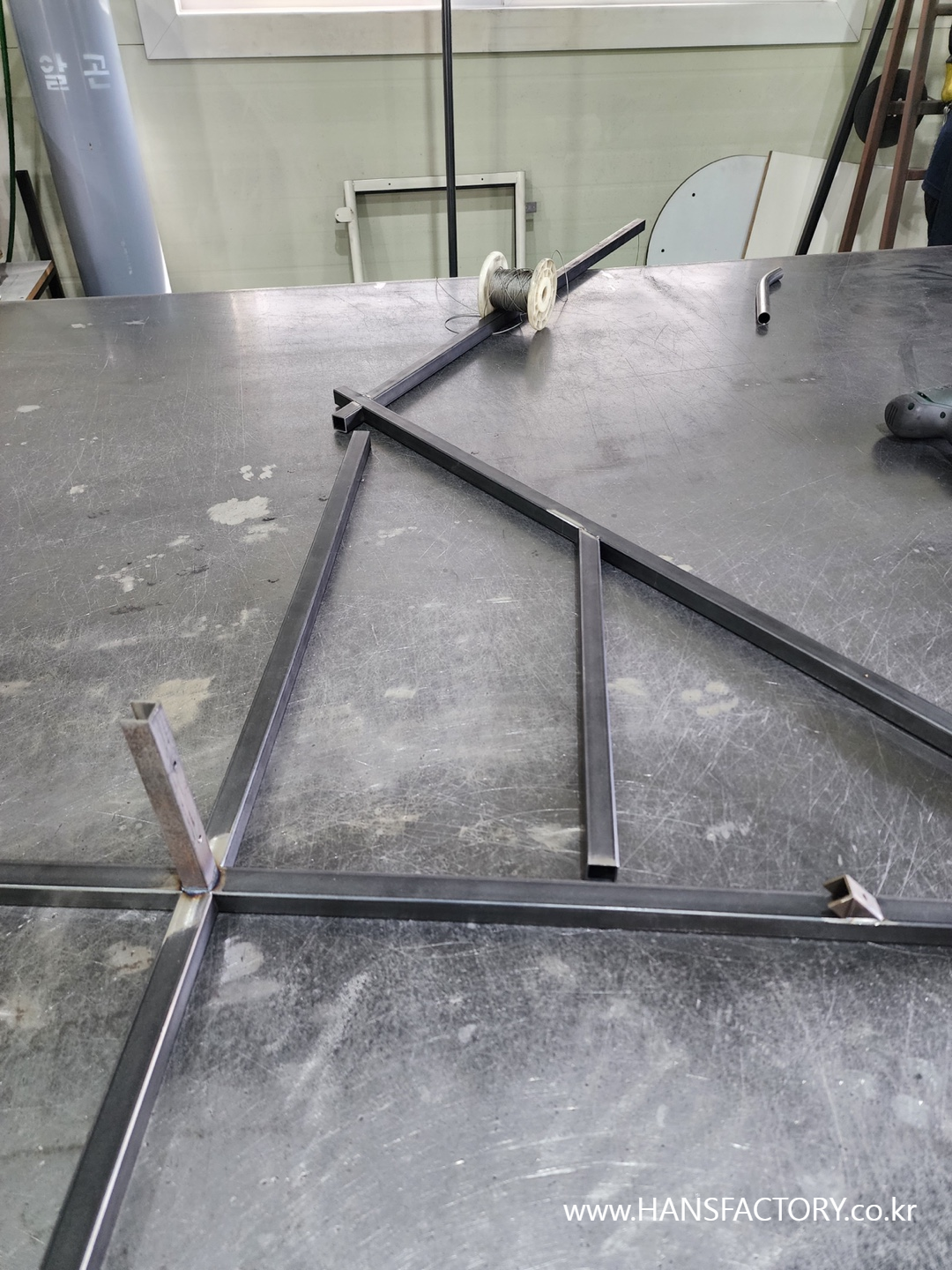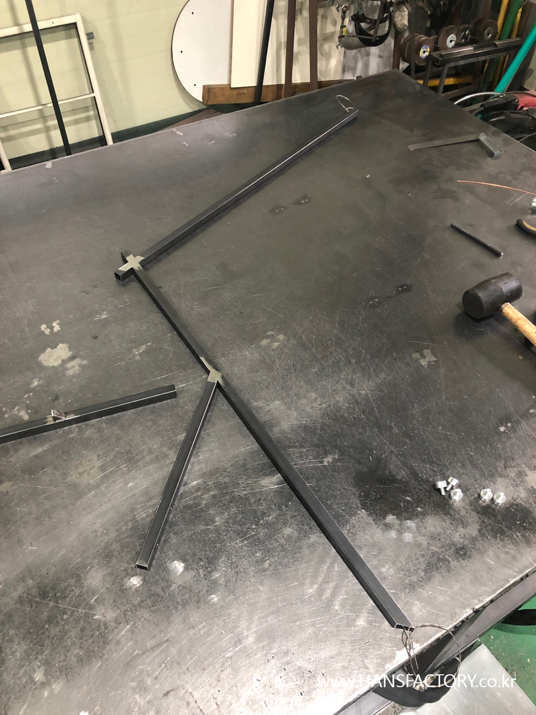 4각 파이프를 도면에 맞춰 재단, 용접, 칠 작업을 거쳐서 준비를 합니다.