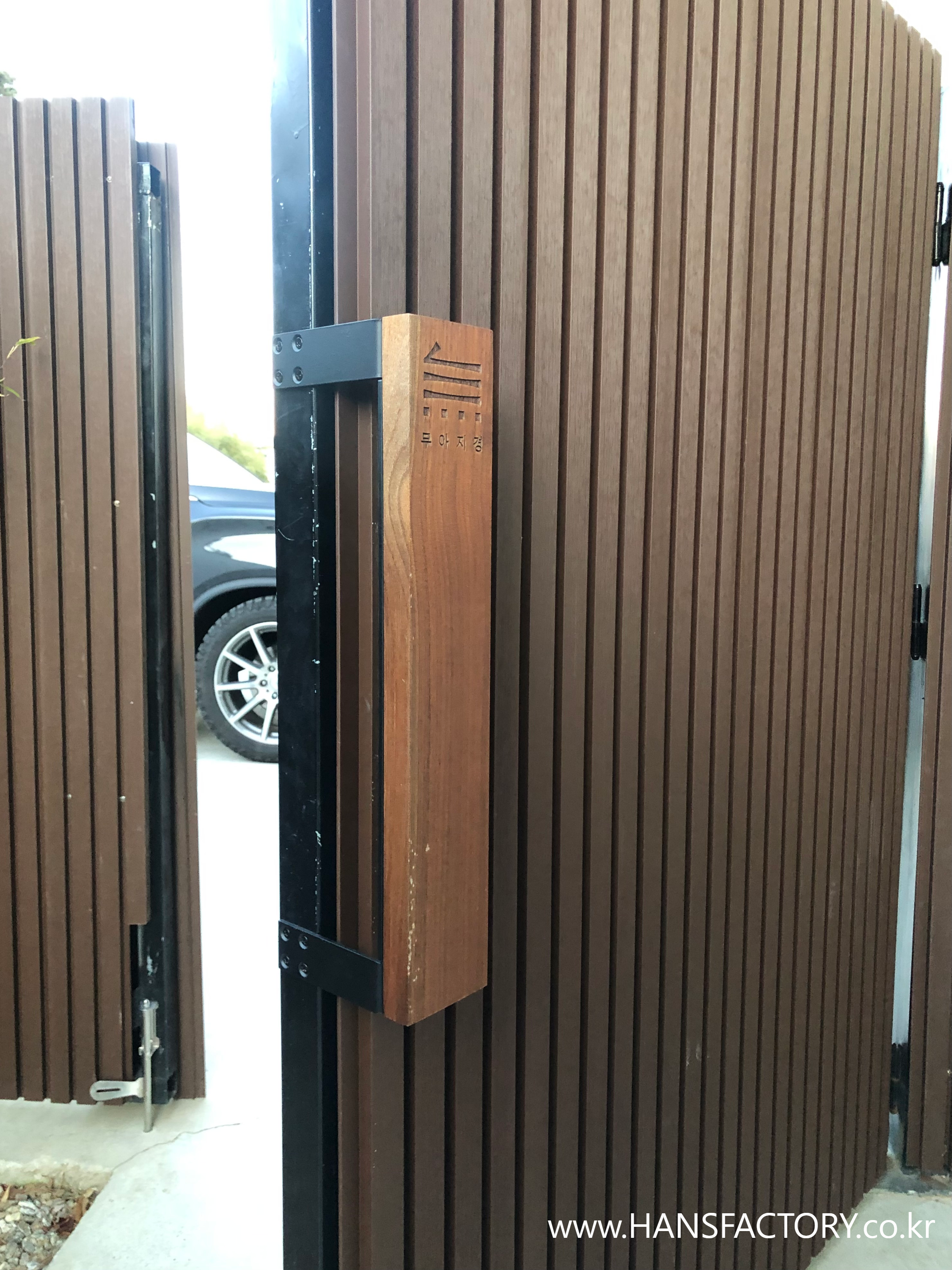 이렇게 원목+금속으로 구성된 대문 손잡이를 만들어 드렸고요
