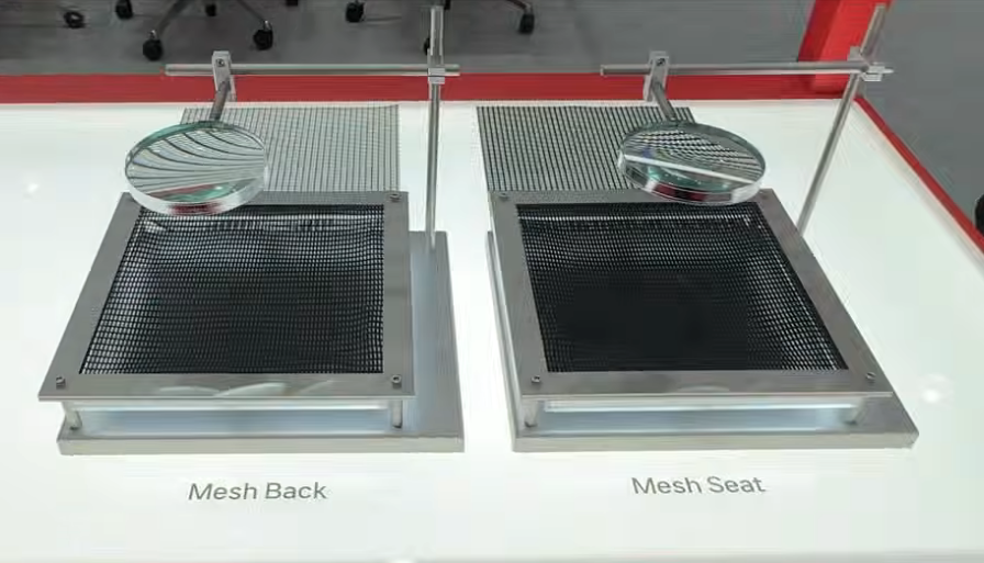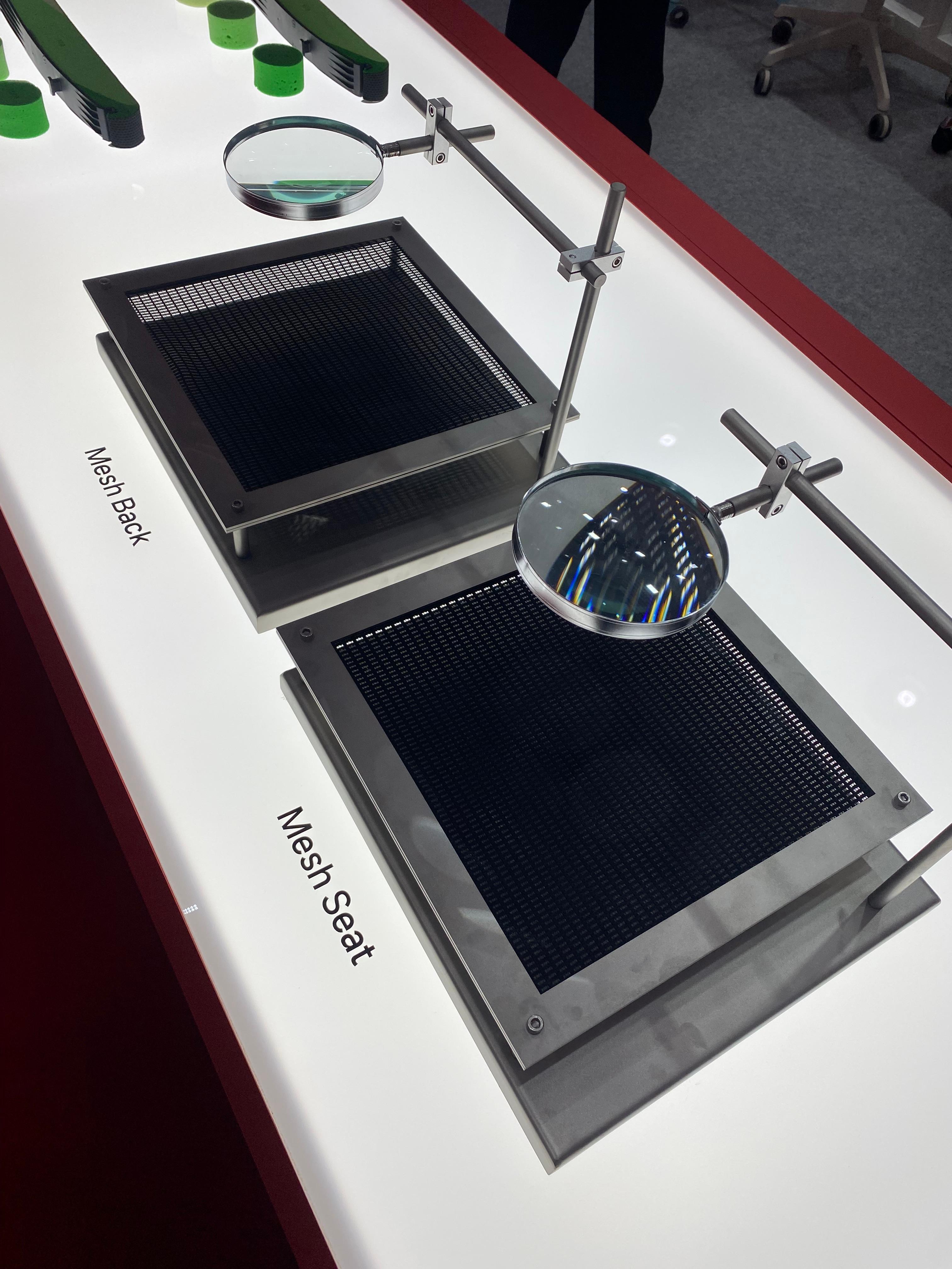프레임 안에는 오카무라 체어 제작에 사용되는 메쉬 원단을 거치해서