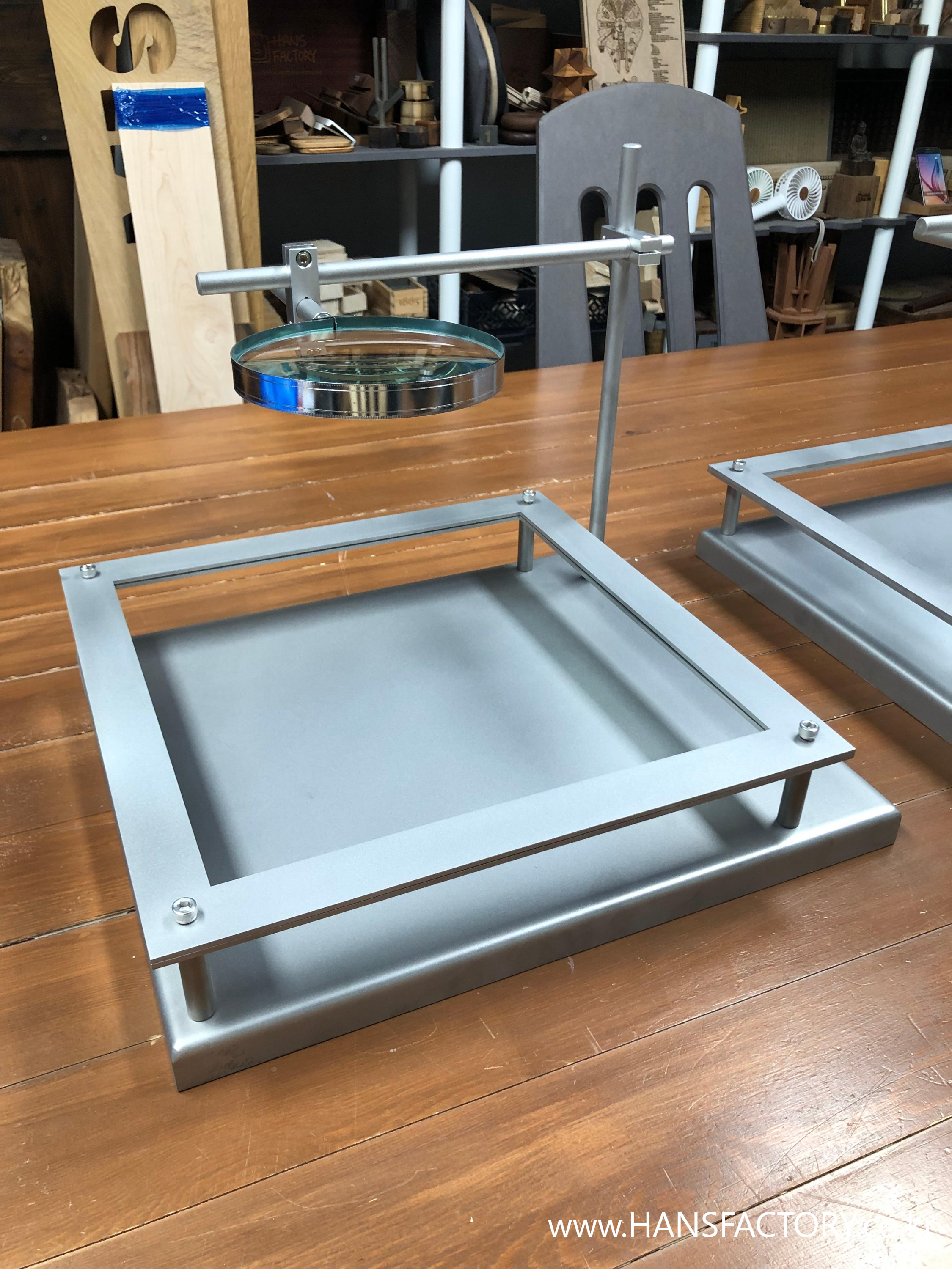 아주디자인그룹에서 전시용 돋보기+금속프레임을 제작해 달라 연락 주셨어요,