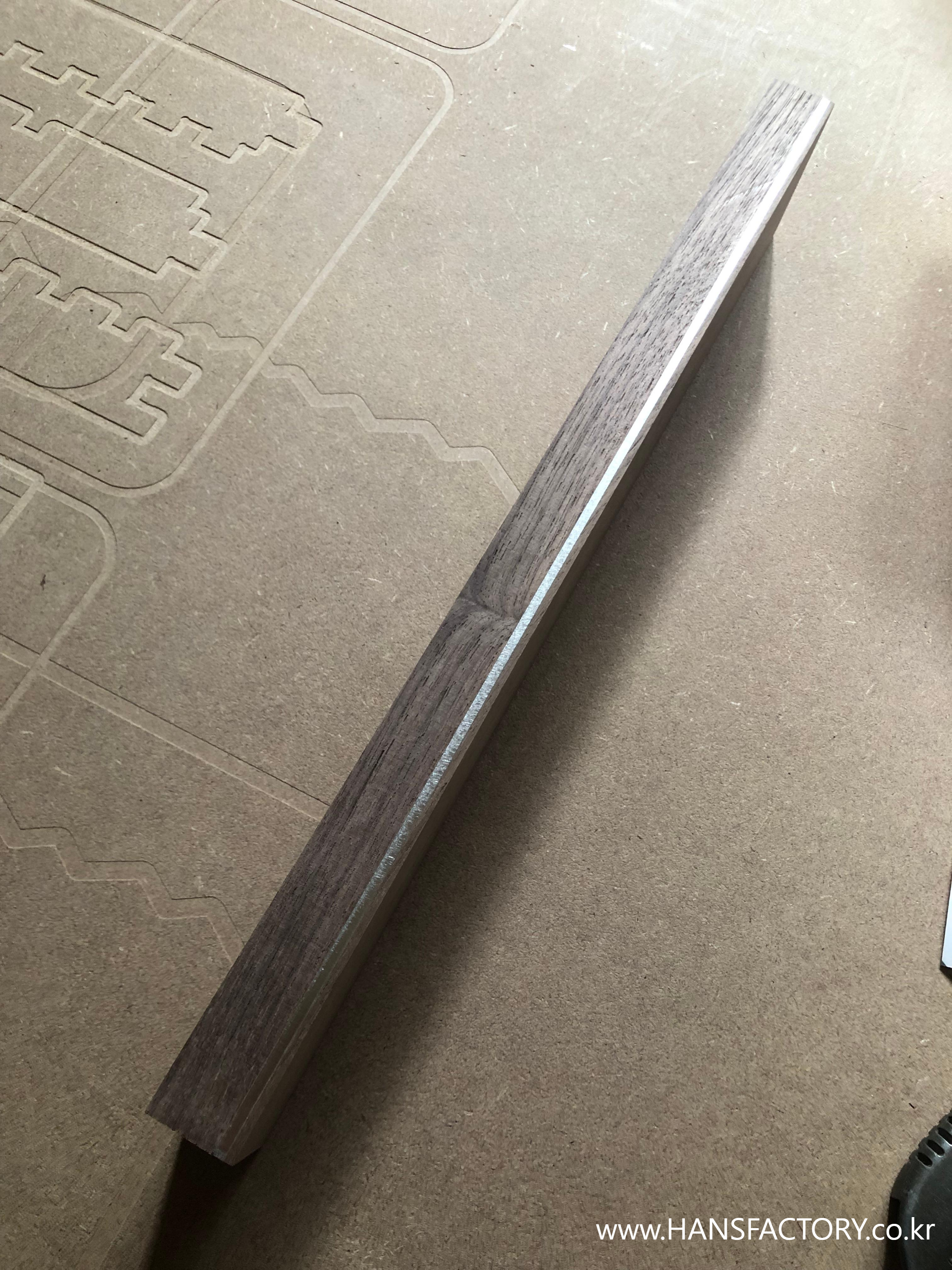 원목과 스테인리스 304 재질도 같은 크기로 가공해서 앞뒤로 결합해 주고