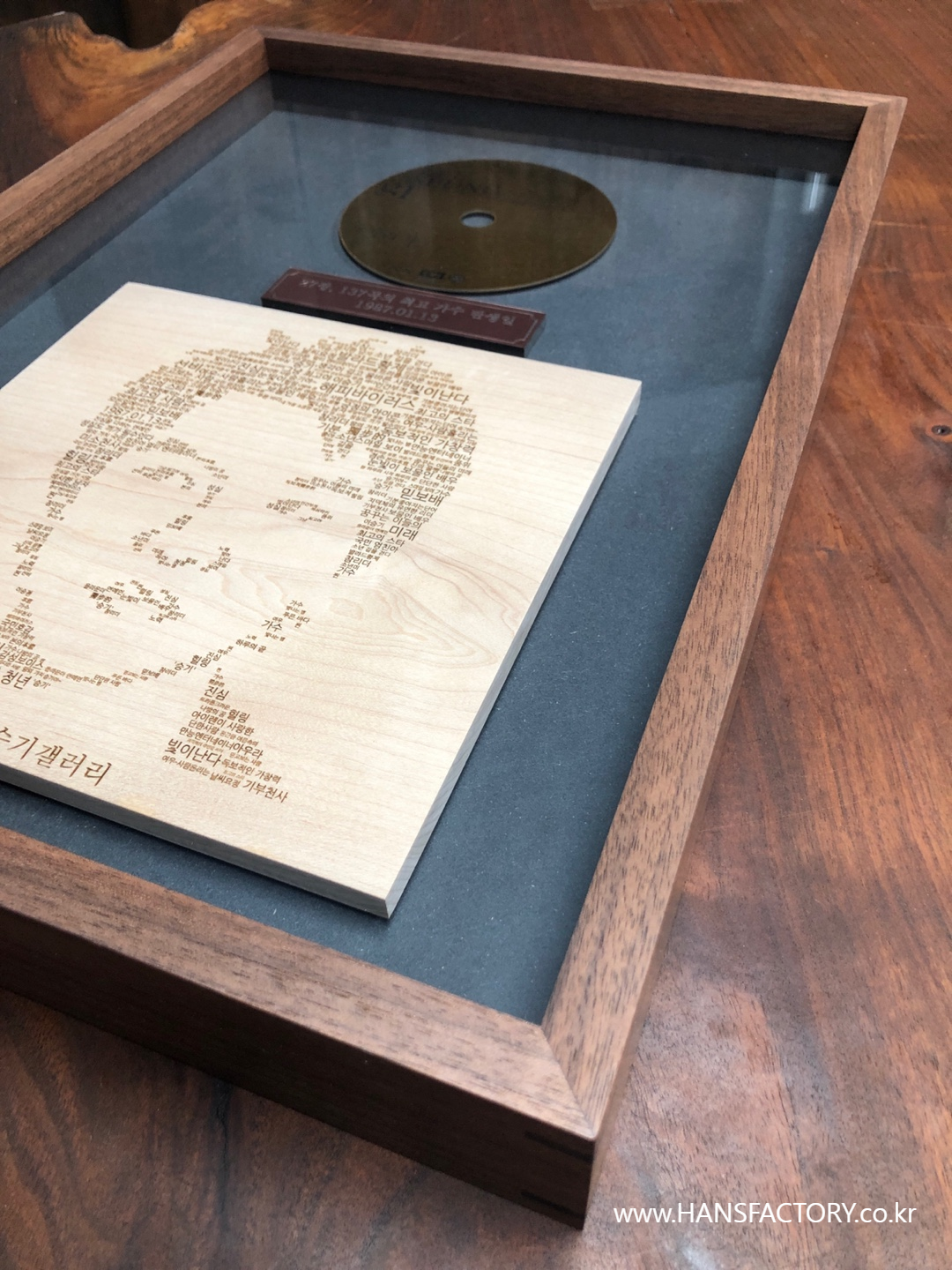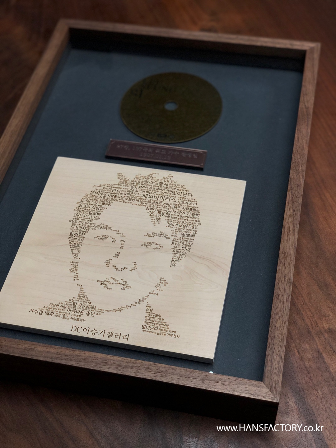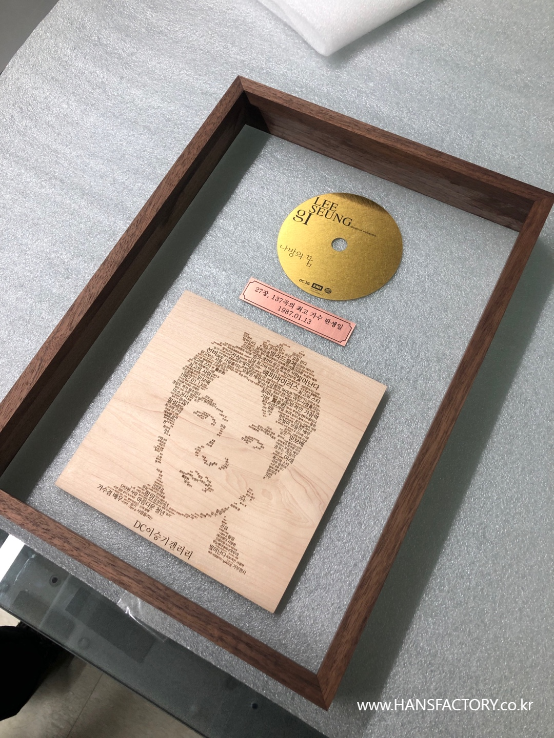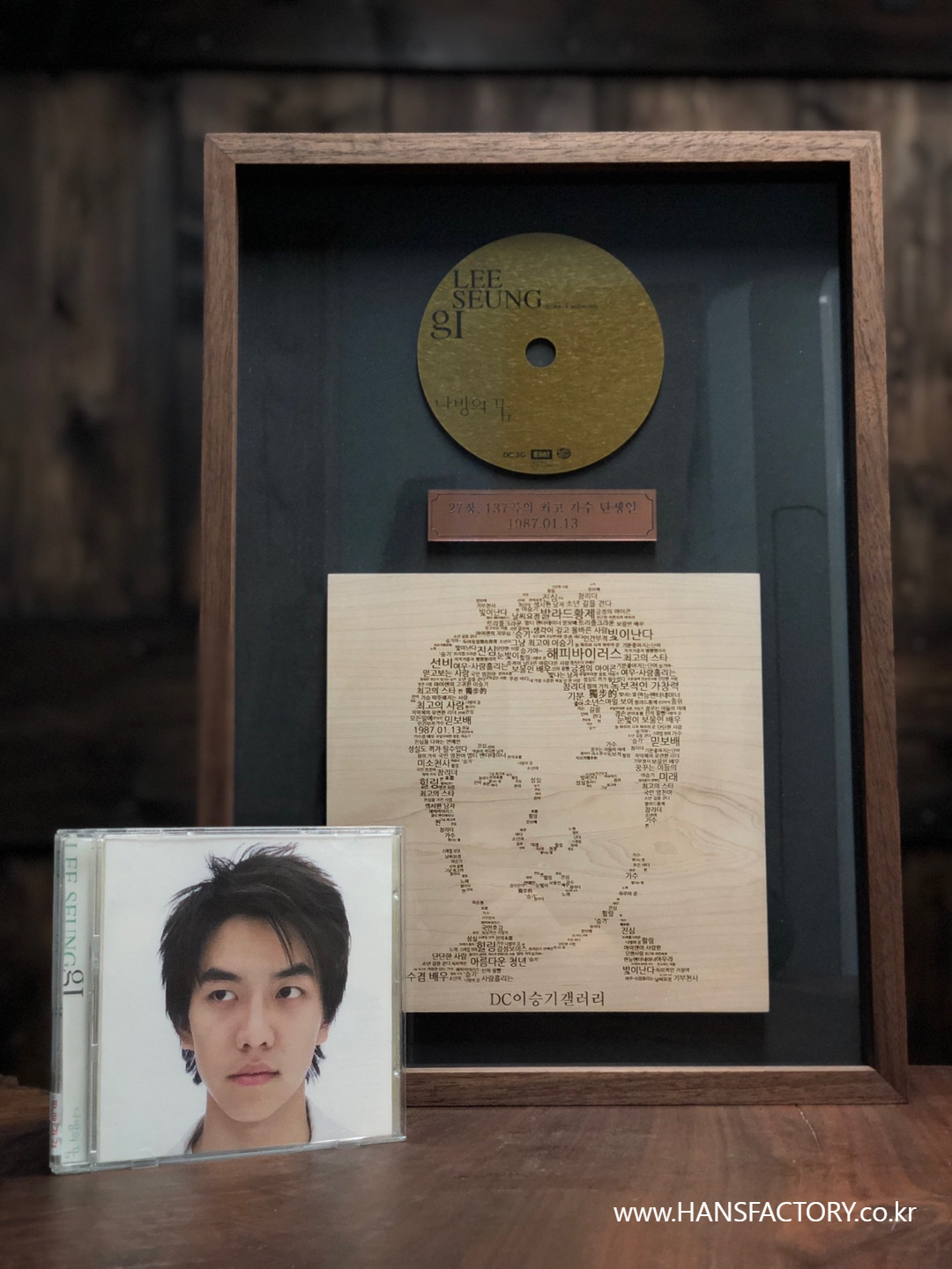 이승기 님의 얼굴 사진과 CD를 본떠서 원목 액자에 담으려고 합니다.