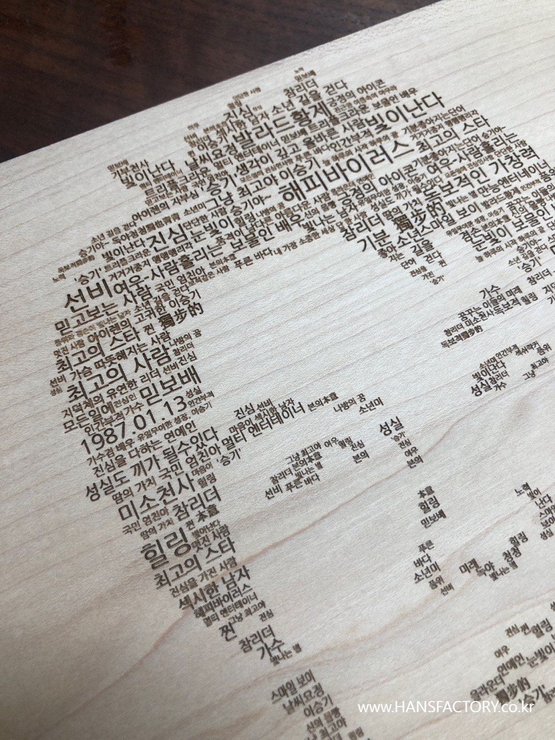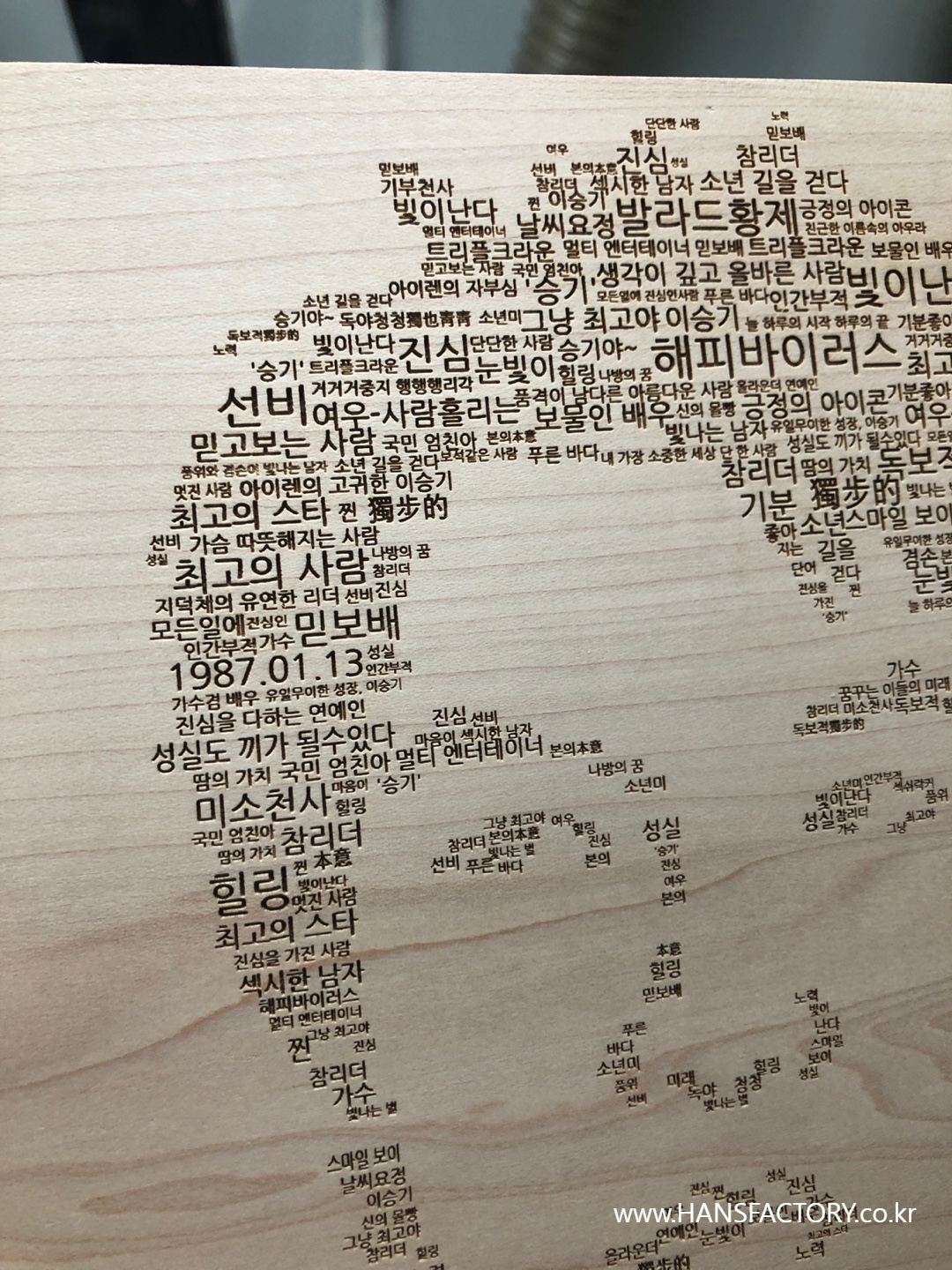 자작나무에 정밀하게 단어들을 조각!!
