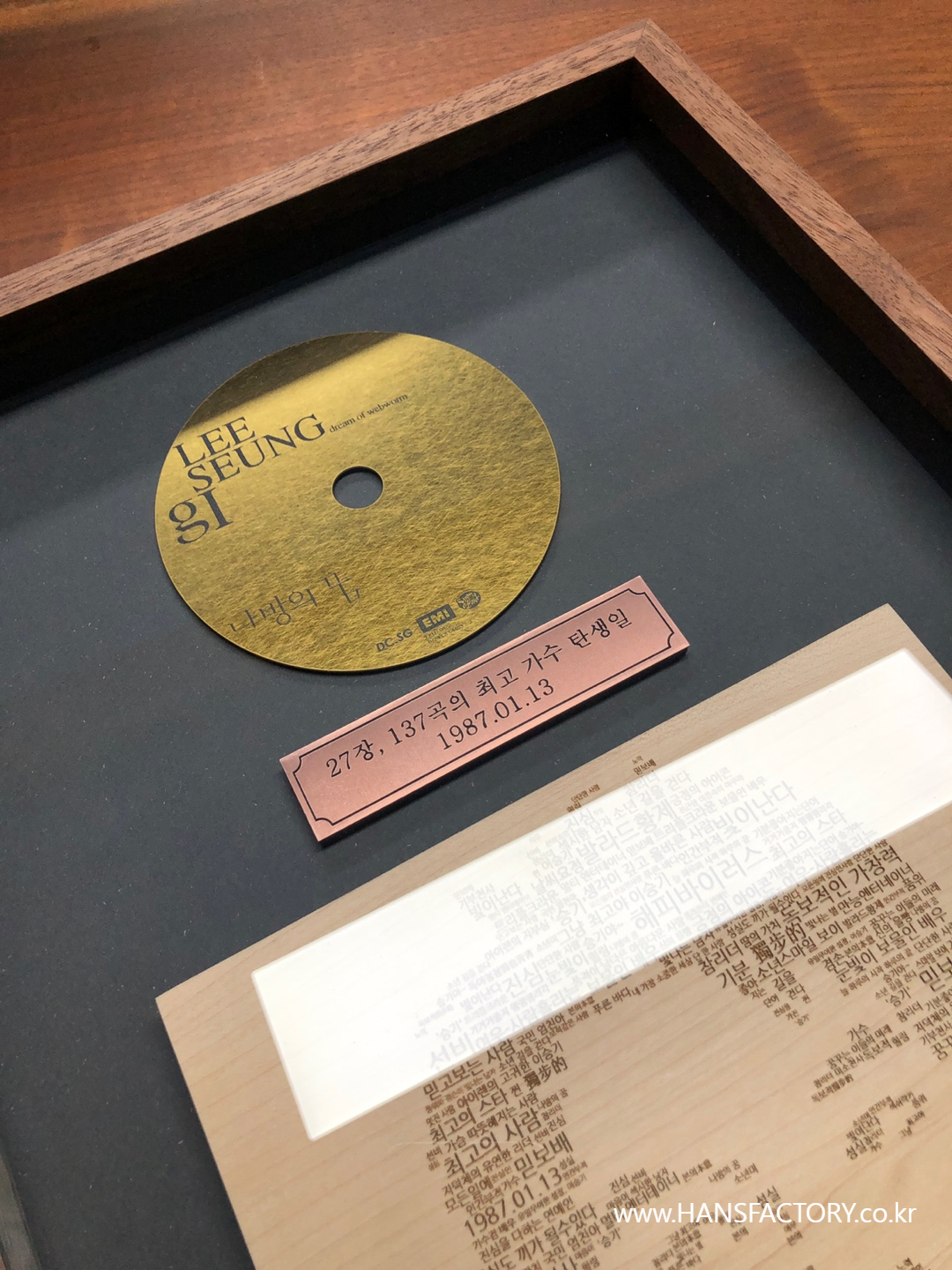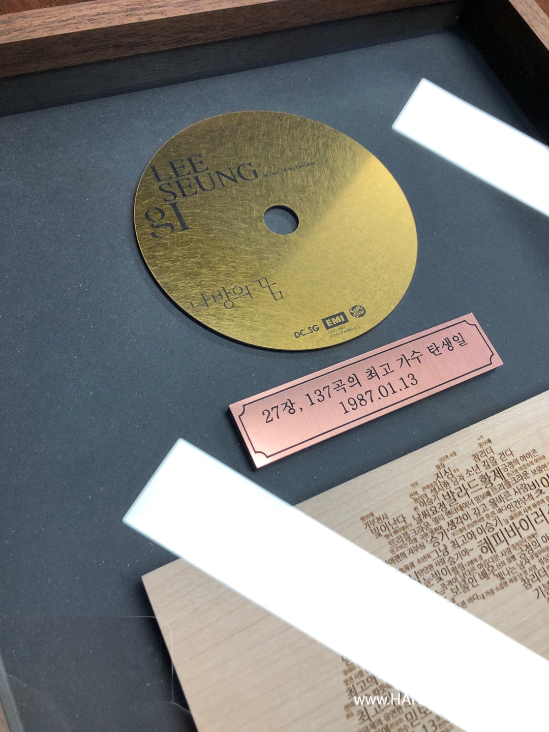 생일이벵 사진 후기 1) 순금 마이크와 CD 2) 1집 원목액자 (가수이승기의 시작 1집) 3) 조명액자 (가수로써 또다른 시작을 알린 잊기늦) 4) 펜레터 & 착한바람북 5