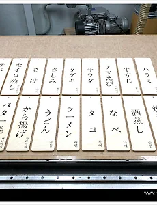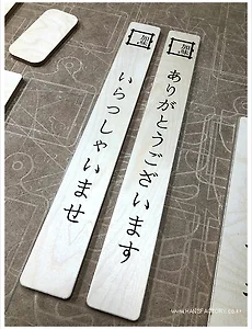 안녕하세요^^ 한스팩토리입니다. 별내동 이자까야 가미(加味) 셰프님이 추가로 주문해주신.... 실내에 걸어둘 메뉴판 제작입니다^^ 실내 분위기에 맞춰서~ 디자인 잡고~ 시안 준비해서 제작 진행 해 보았습니다. 제작에 사용한 자재는 자작나무 판재 이구요^^ 시작해보겠습니다. 두둥!! 이자까야 가미(加味) 에서 요리하는 메뉴들을 좌~~악~~ 소개하는... 일종의 출사표 같은 메뉴판 입니다. 데판야끼, 세이로무시, 연어, 사시미, 타다끼, 사라다, 아마에비, 규스시, 안창살, 관자, 빠다야끼, 가라아께, 우동, 라멘, 문어, 나베, 술찜, 생선구이, 튀김 등등... 나무 만지는 요리 무식이가 처음 들어보는 단어들도 있네요 ㅋㅋ 정교하게 재단된 자작나무 판재에... 메뉴 이름들을 각인해줍니다. 깔끔하게 퀄리티 ..