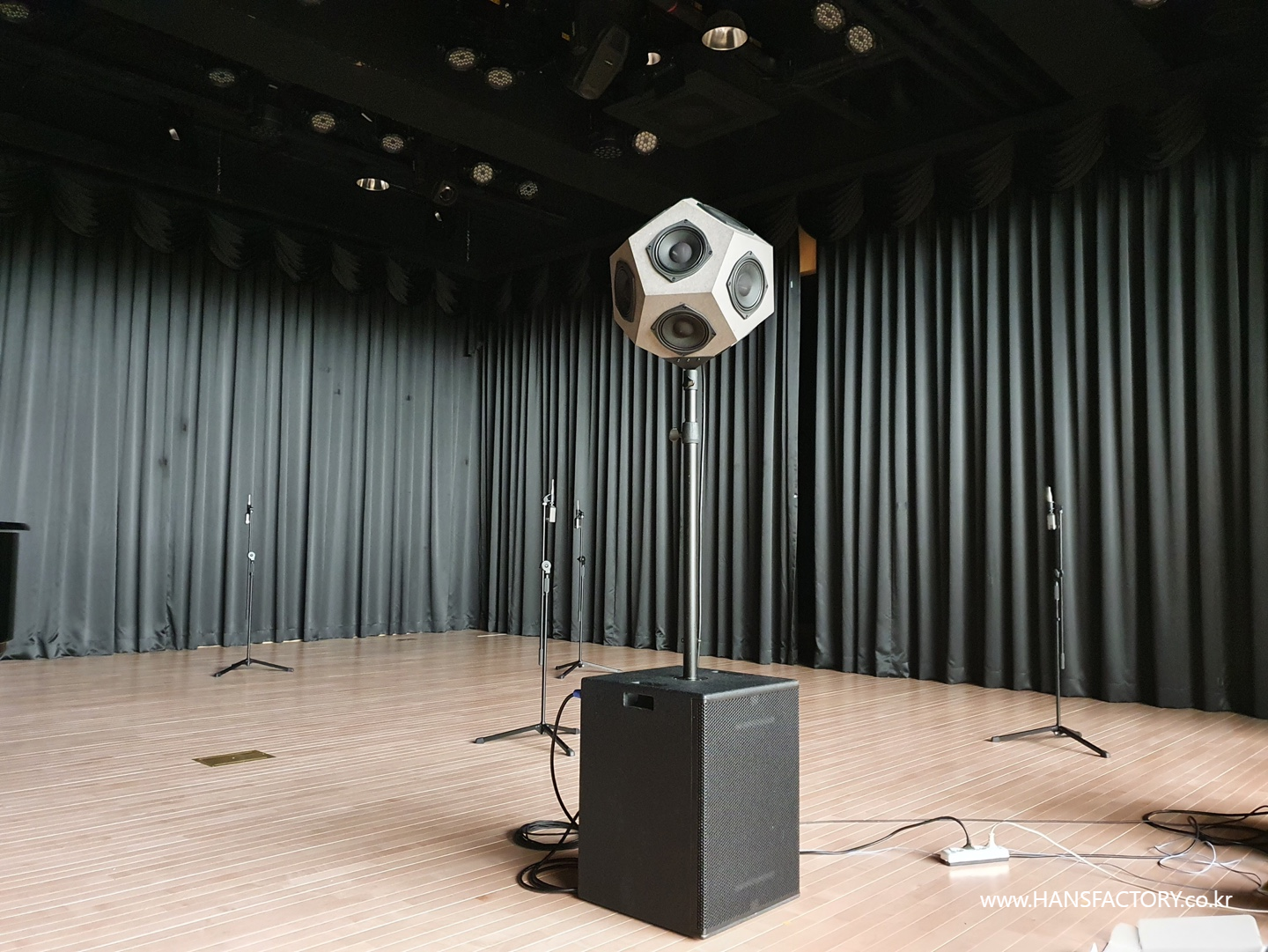 정 12면체를 만들고 그 구조체에 12개의 스피커를 장착해서