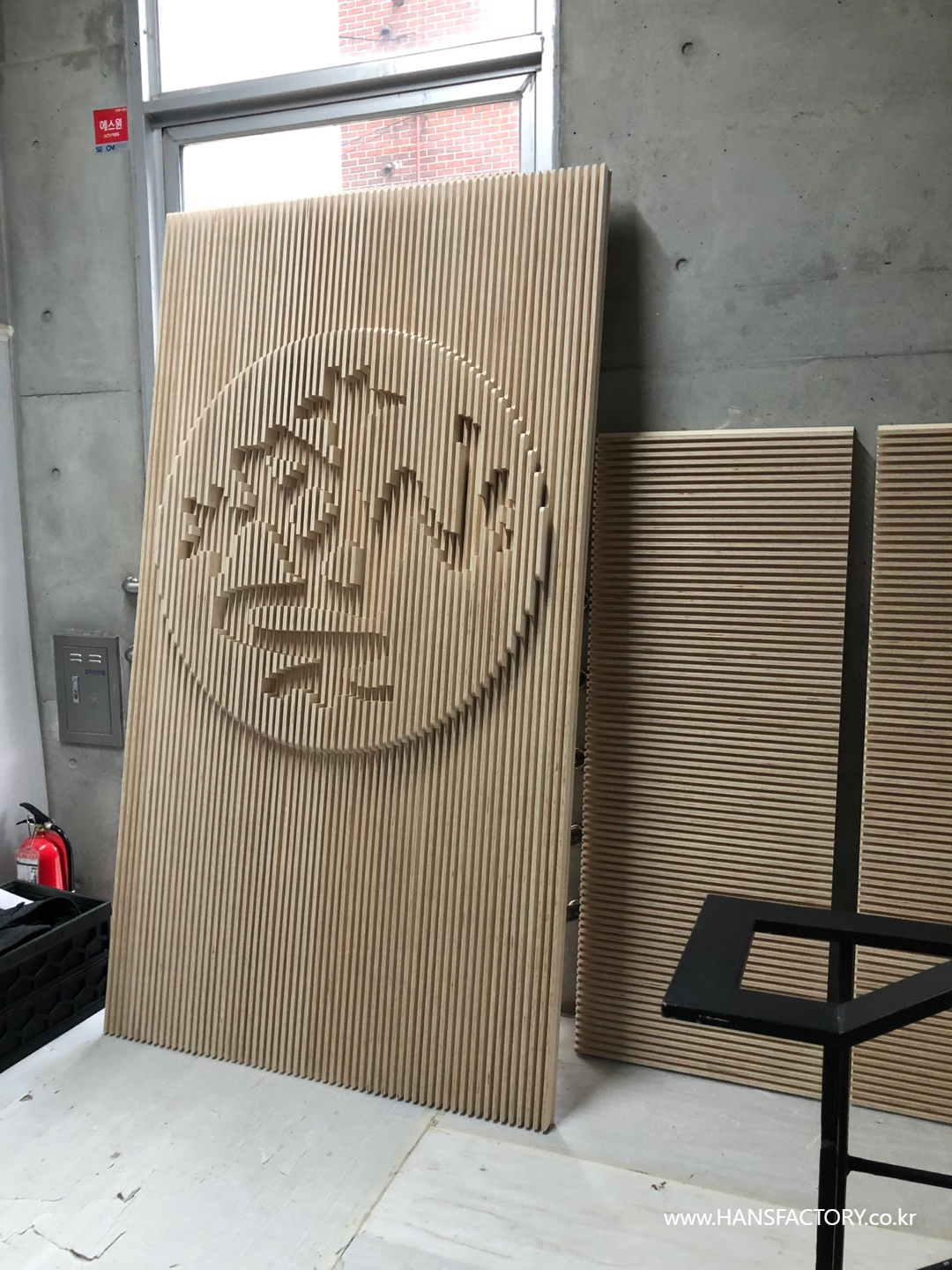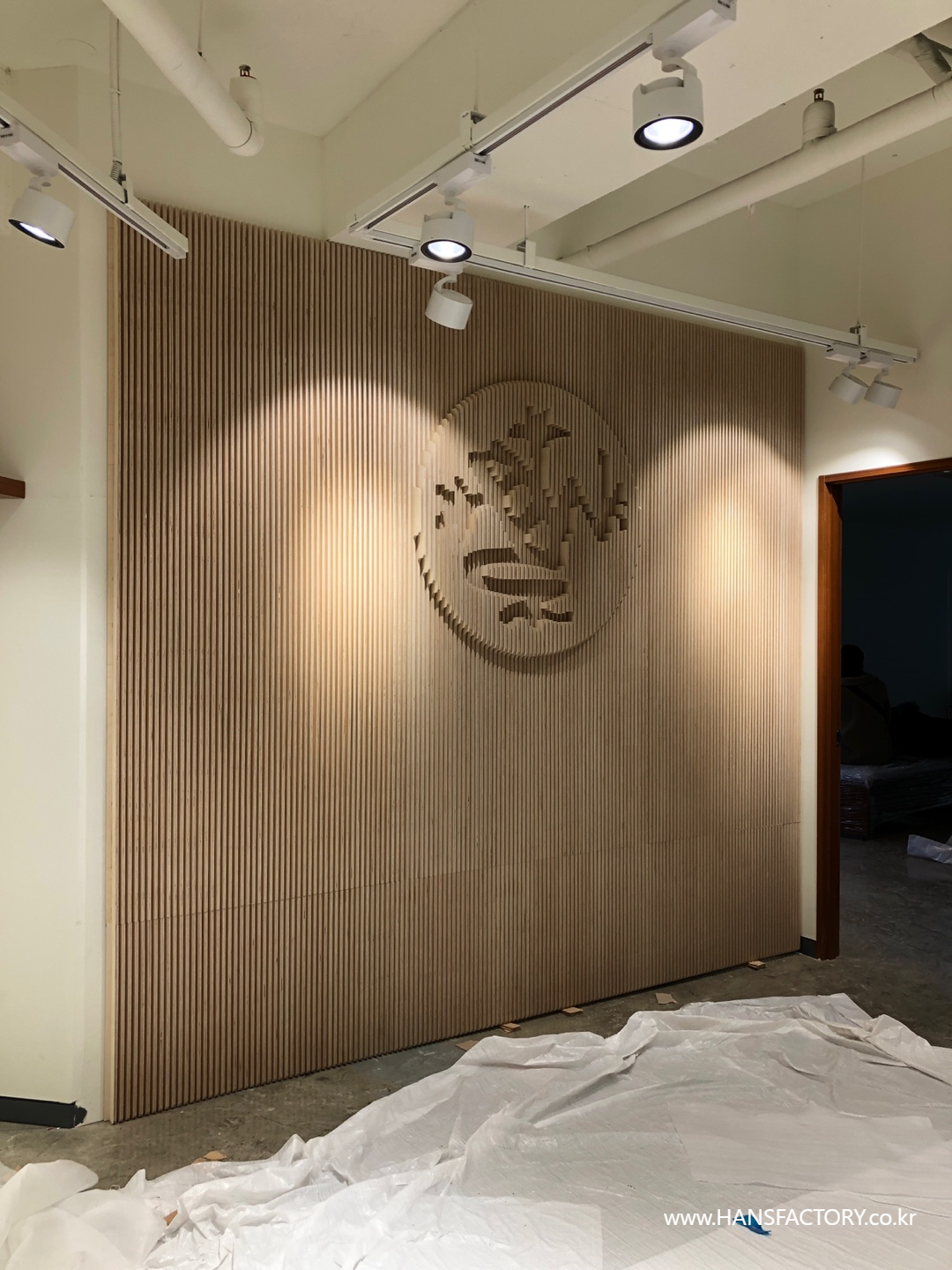 엄청난 무게의 로고 아트월을....
