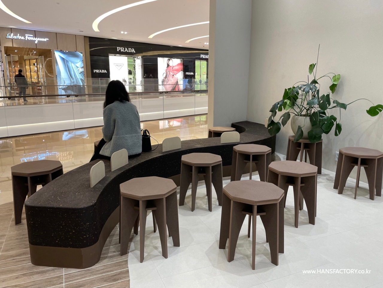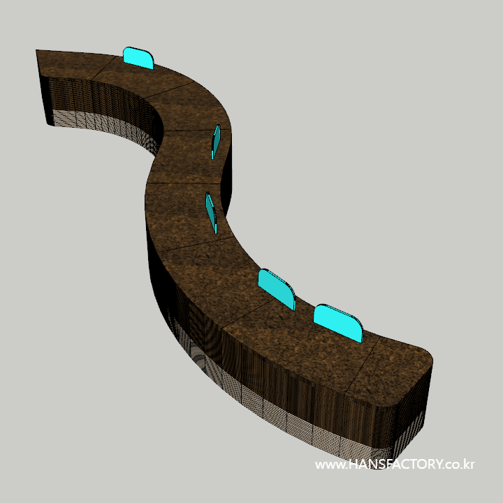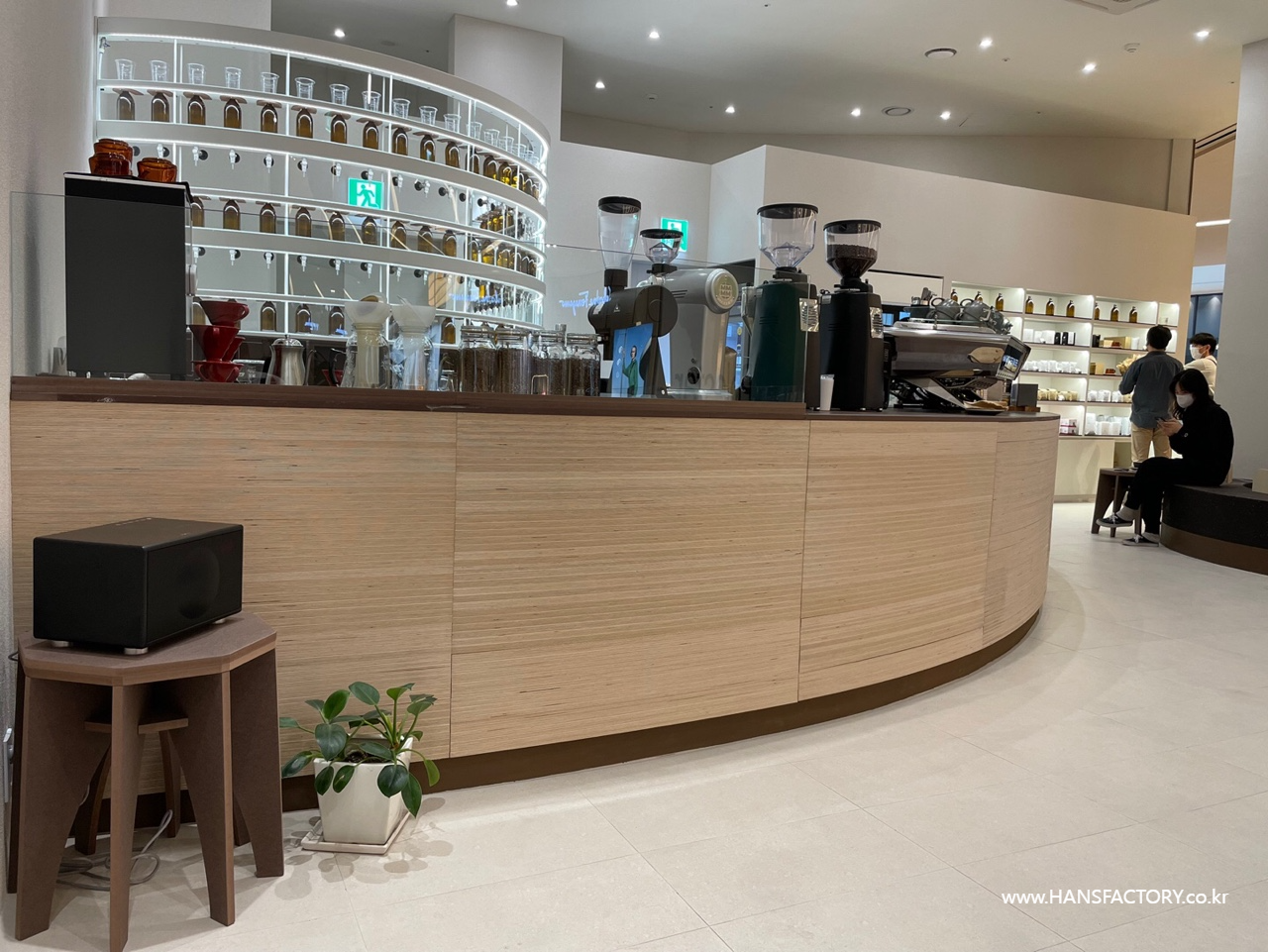매장의 곡선과 잘 어울리는 가구를 디자인해주셨습니다.