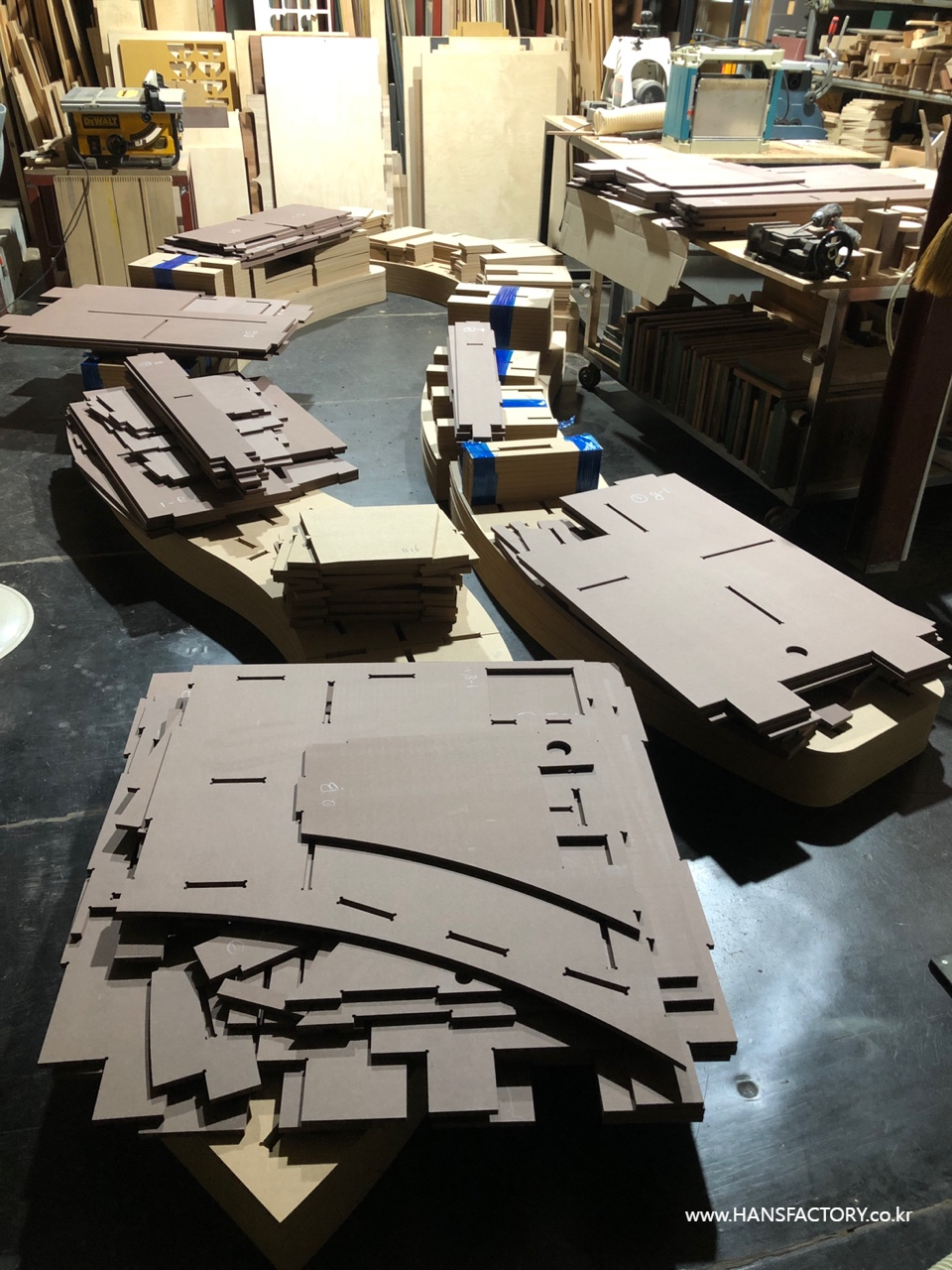 CNC 가공해서 준비된 파츠들이 한가득 쌓였습니다.