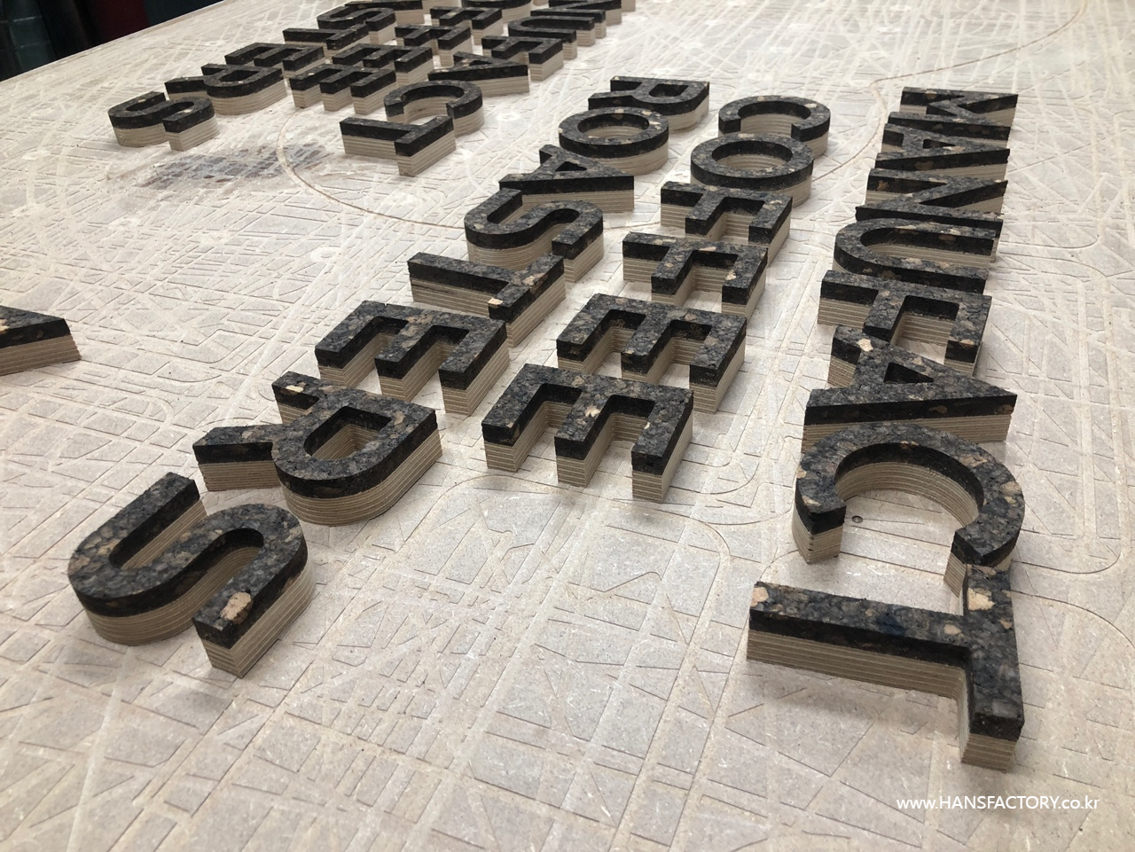 CNC가공으로 준비한 탄화 코르크 파츠들입니다.