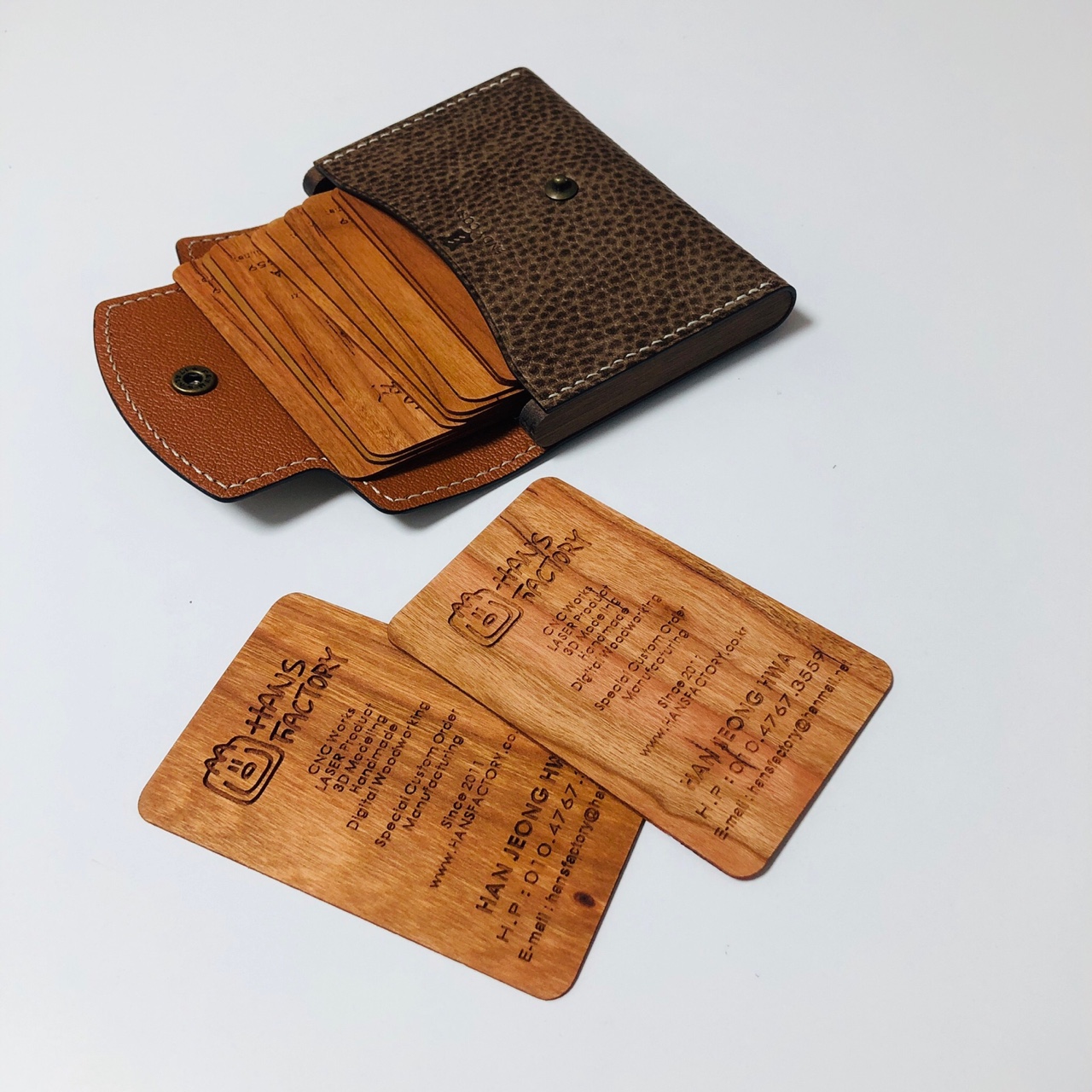 나무 명함을 만들어서 담아 가지고 다닌답니다.