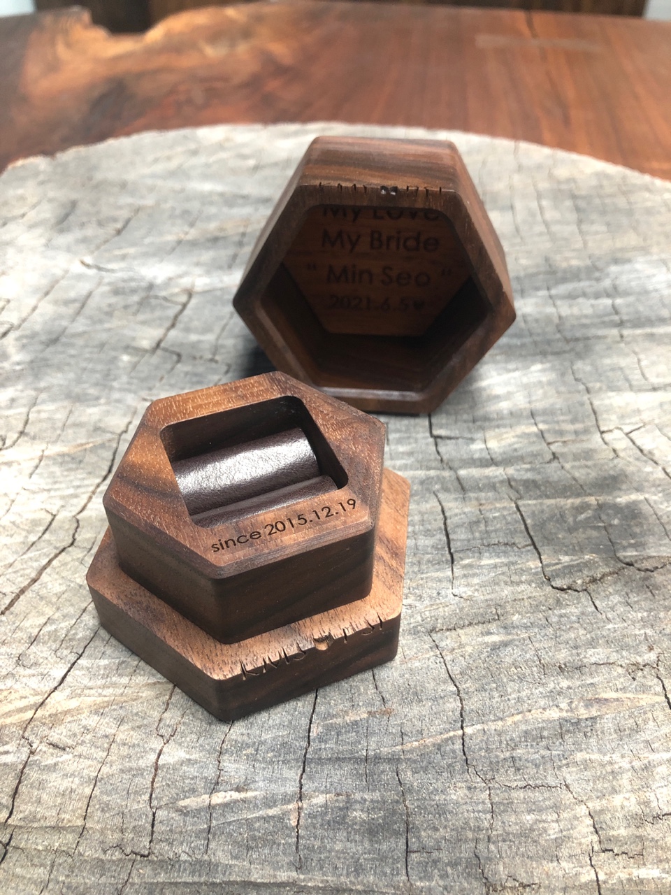 심플한 6각 나무 반지 케이스 - 오더메이드