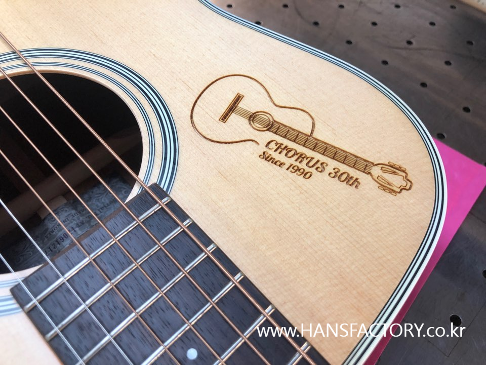 어쿠스틱 기타에 로고를 새겨달라는 의뢰였습니다.