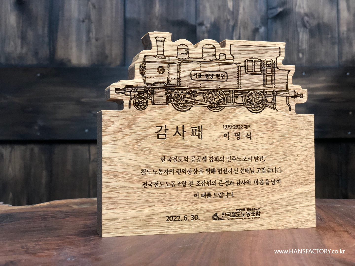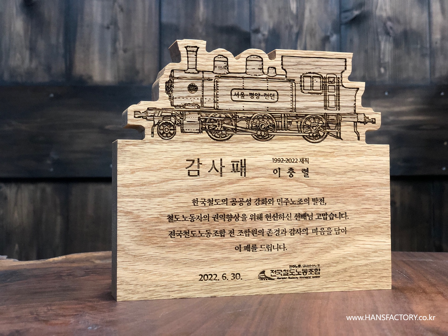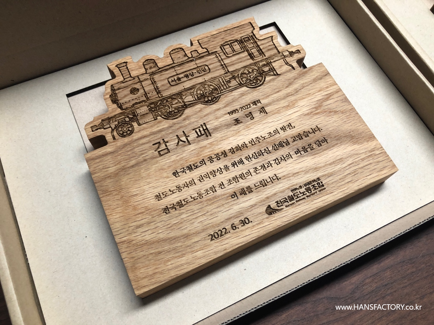 원목 감사패 제작 for 전국철도노동조합