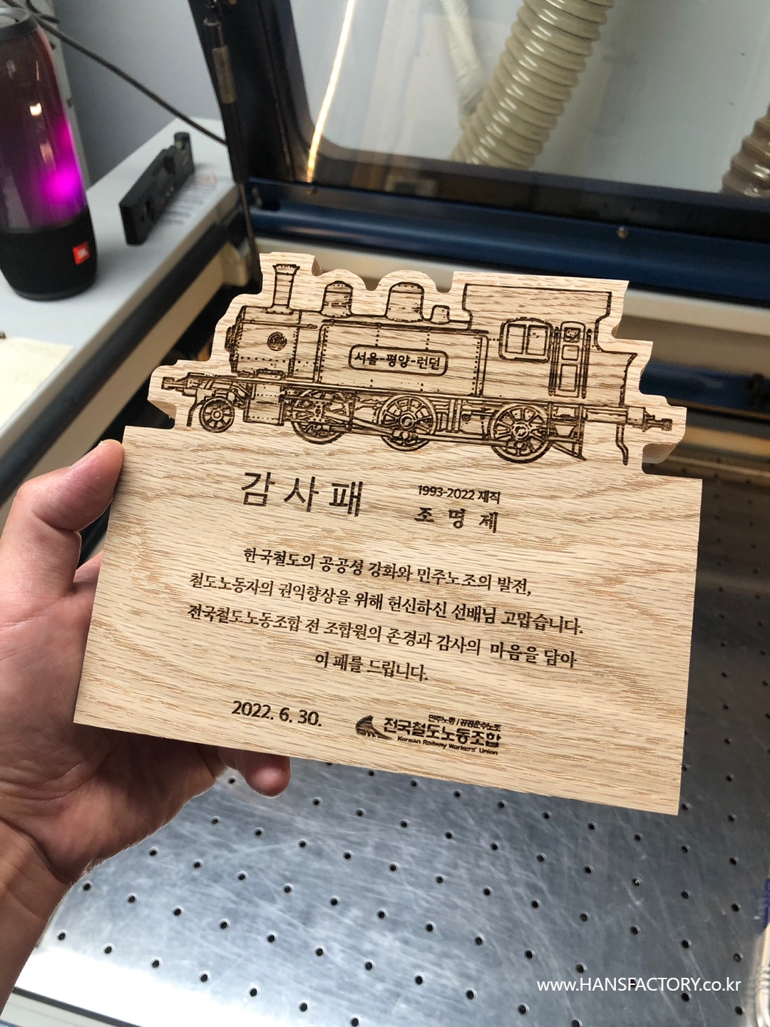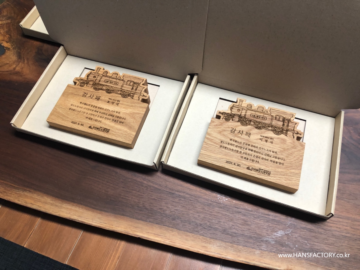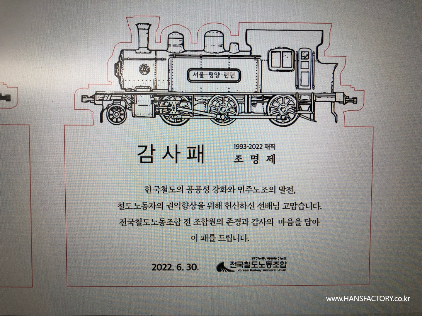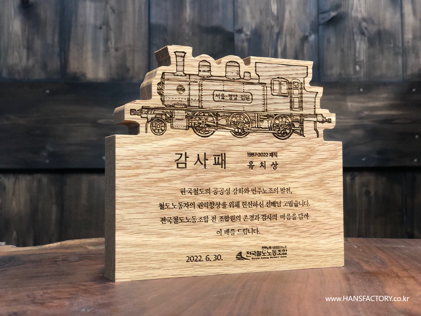 원목 감사패 제작 for 전국철도노동조합