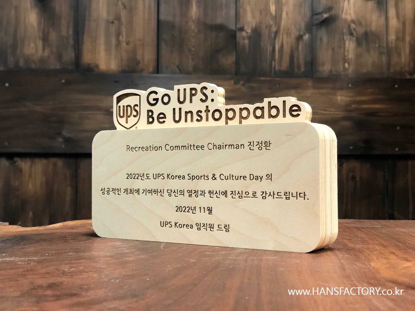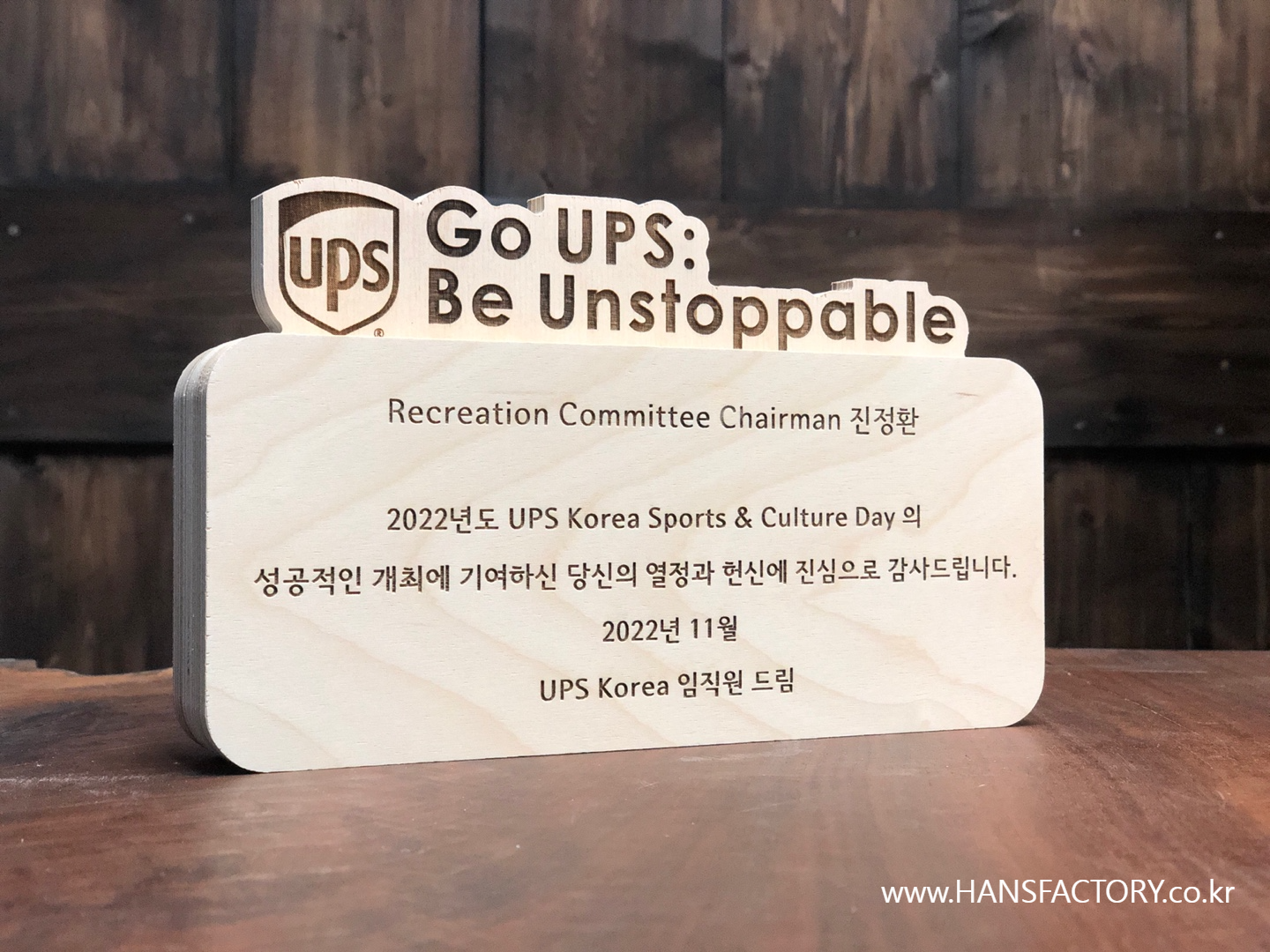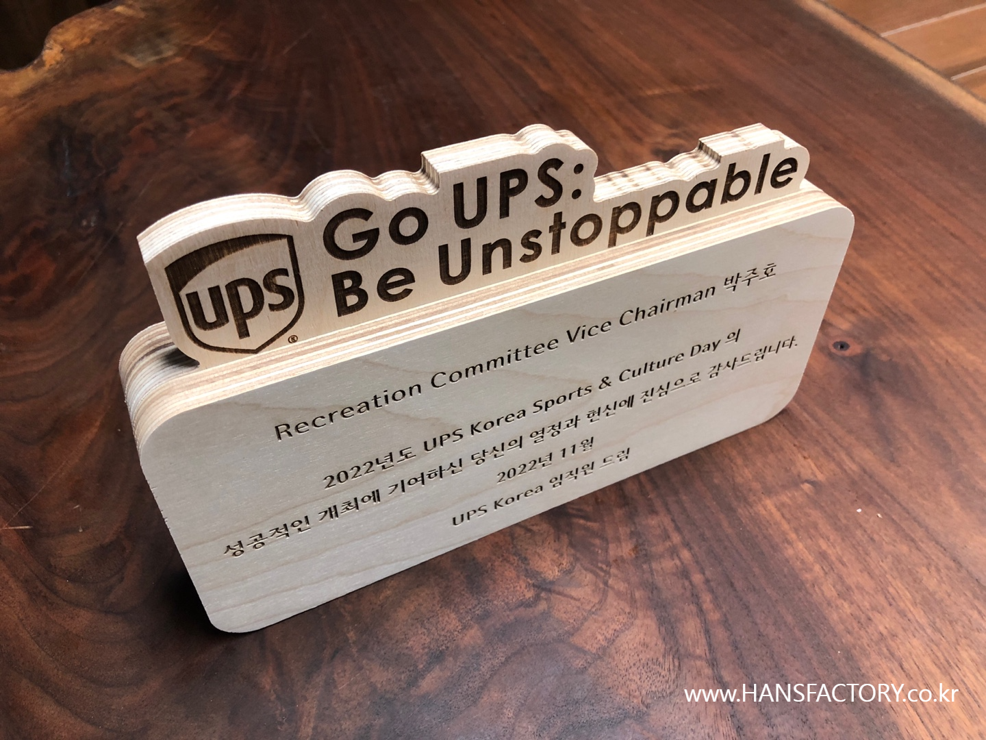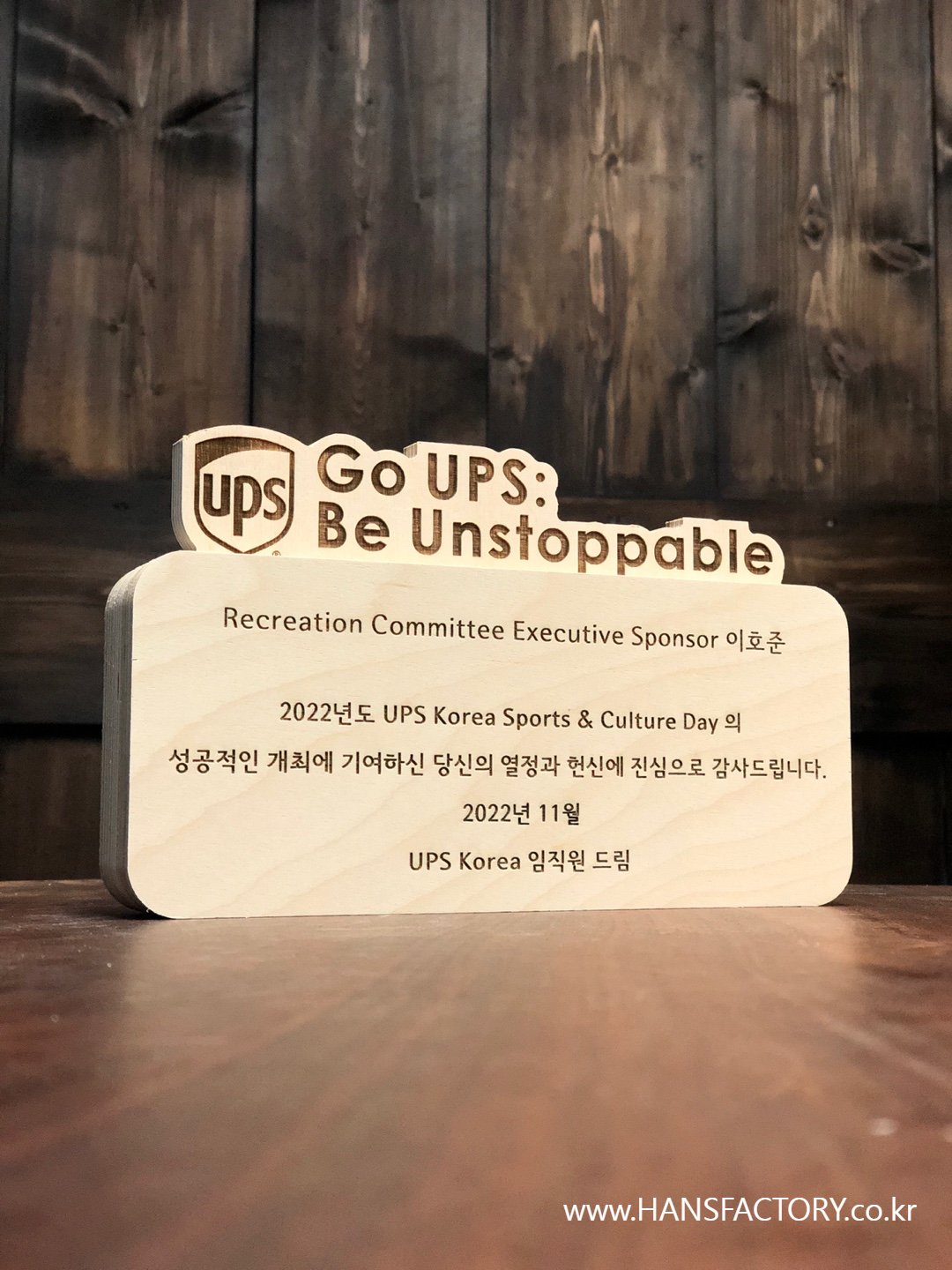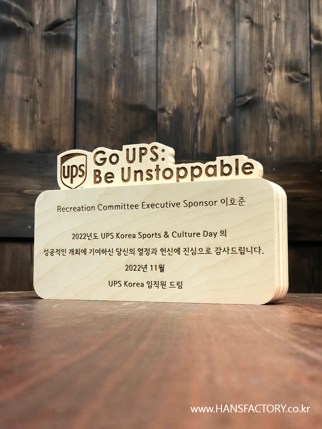 Go UPS Be Unstoppable 우드 감사패 주문제작