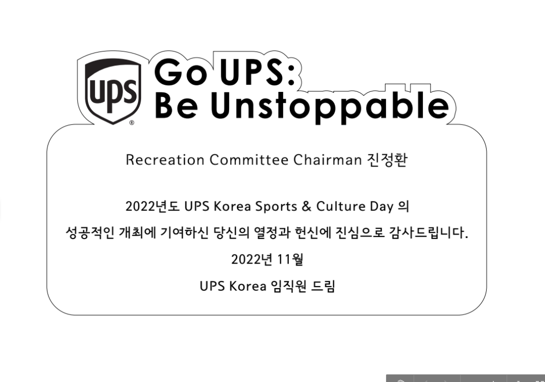 UPS 로고와 감사패에 들어가야 하는 내용
