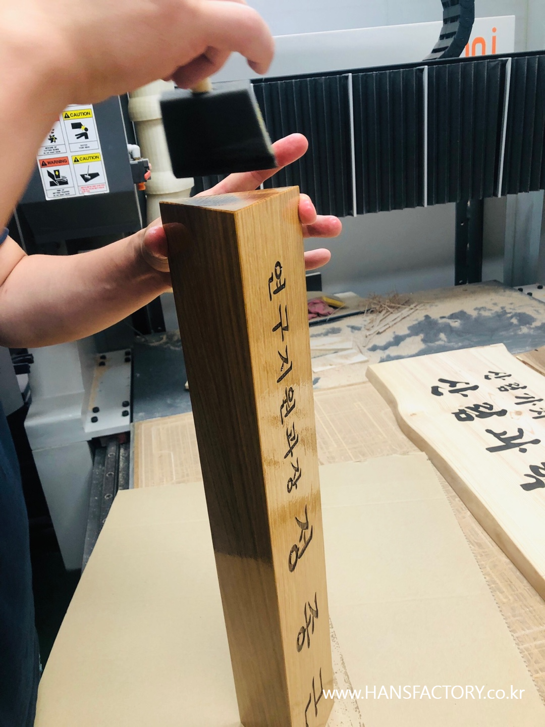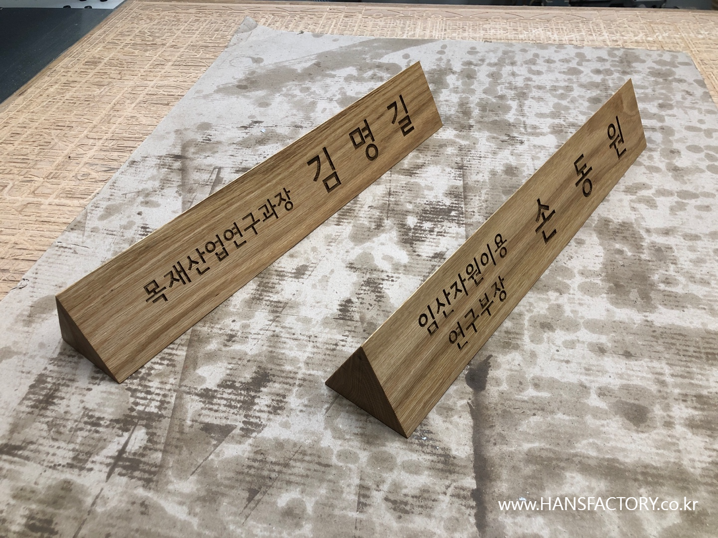 직함과 이름을 새겨준뒤~ 천연오일로 정성스레 마감^^