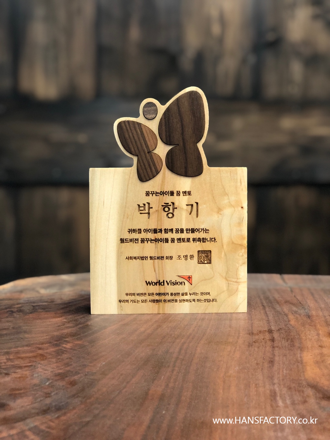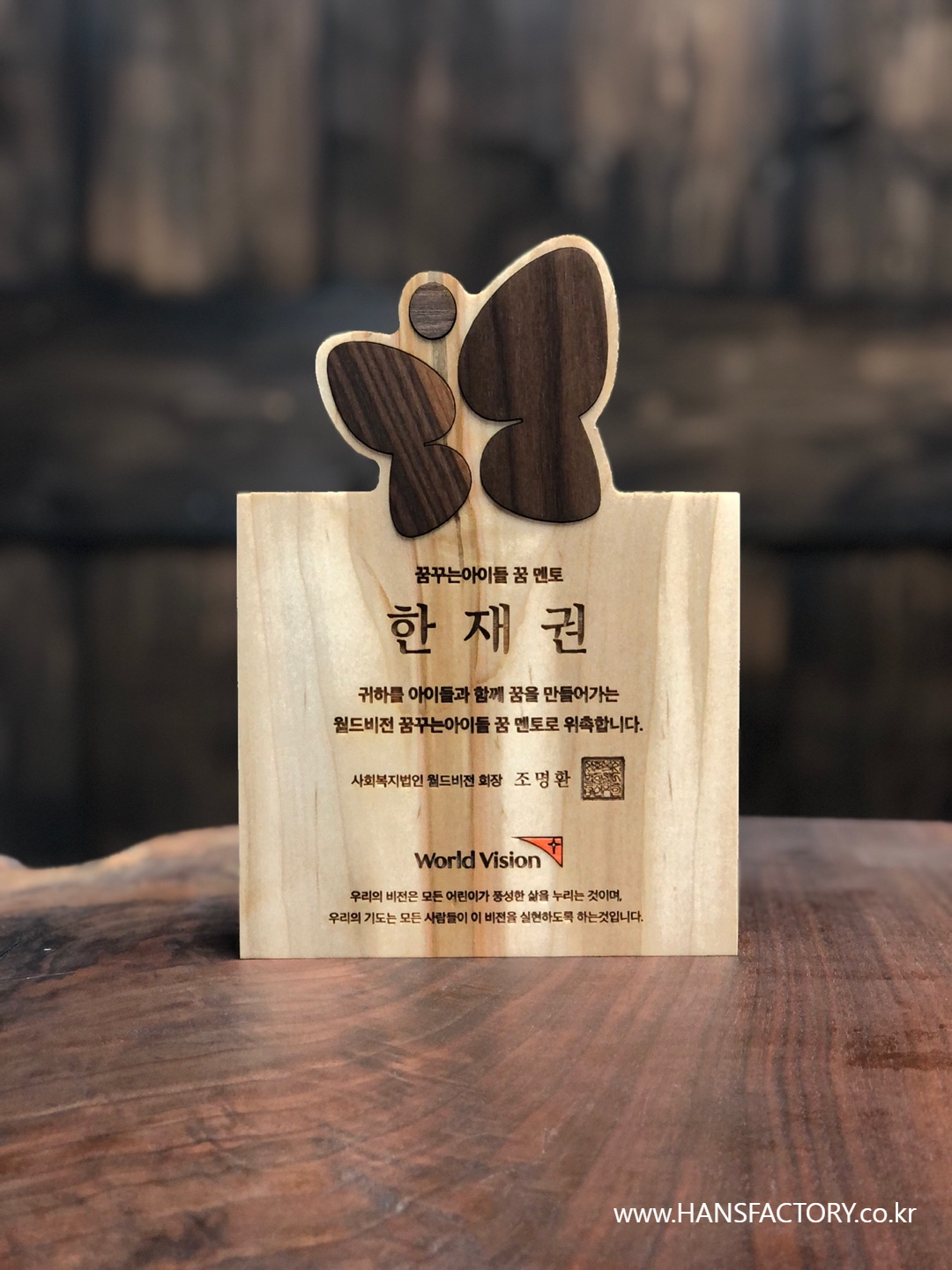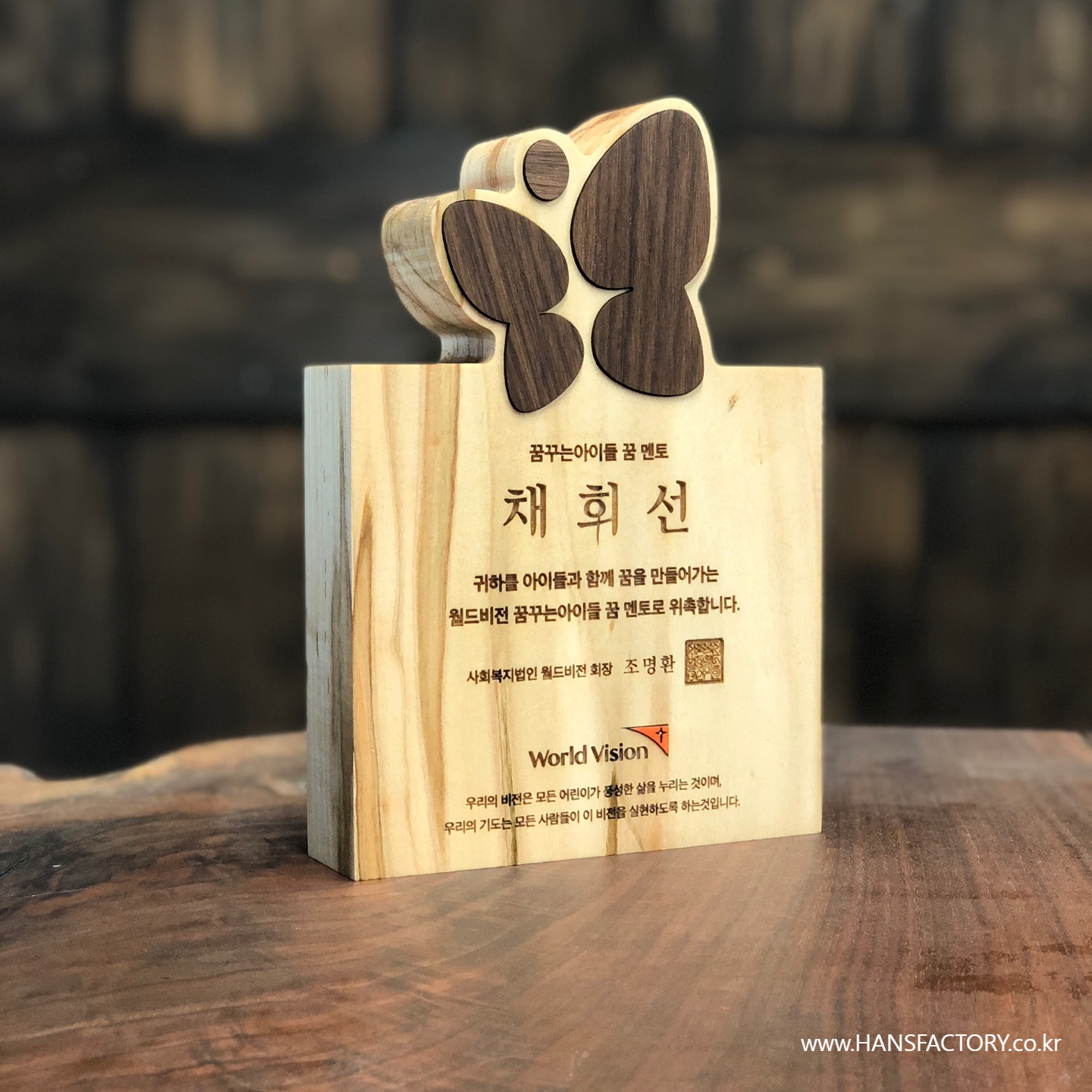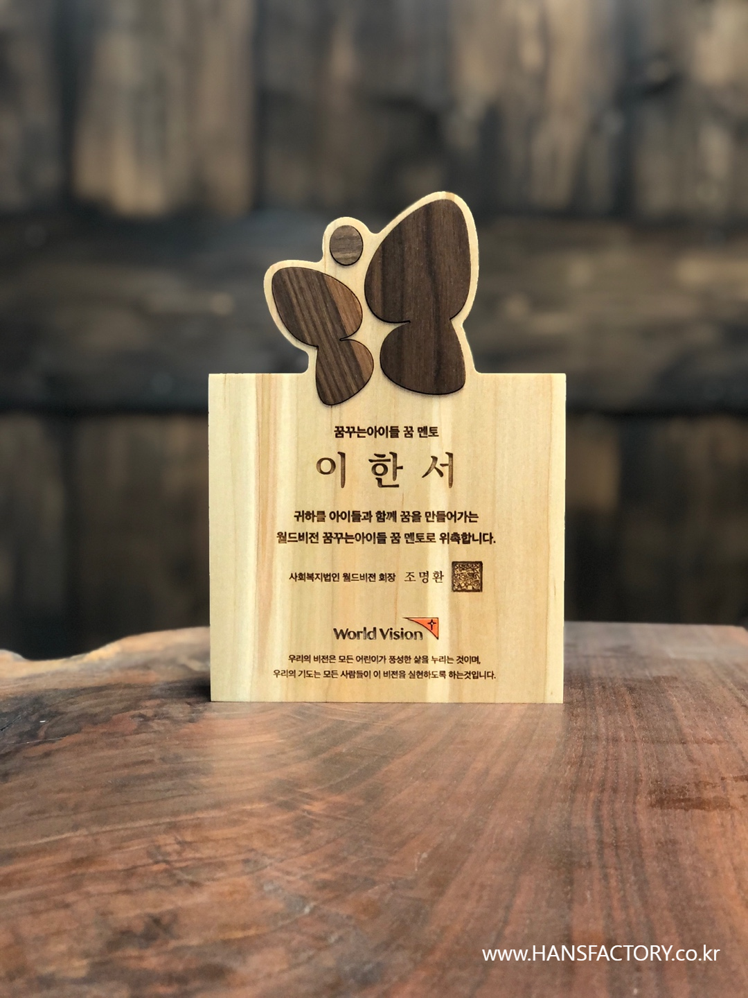 꿈꾸는 아이들 꿈 멘토, 목재 위촉패 제작 for 월드비전 World Vision & 박슬기