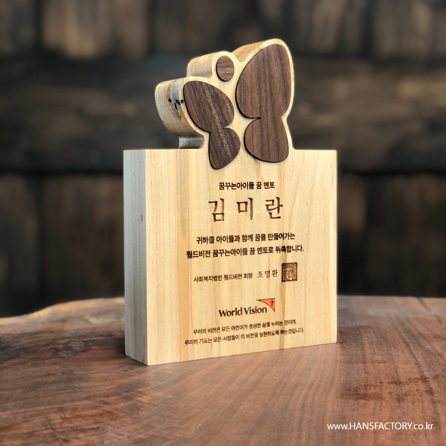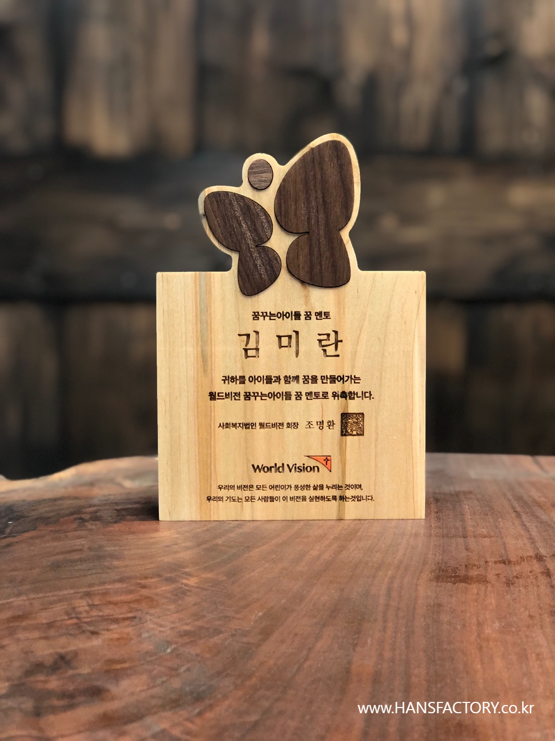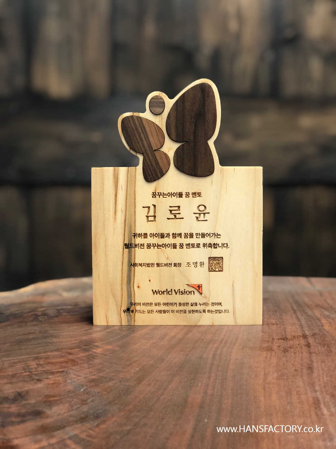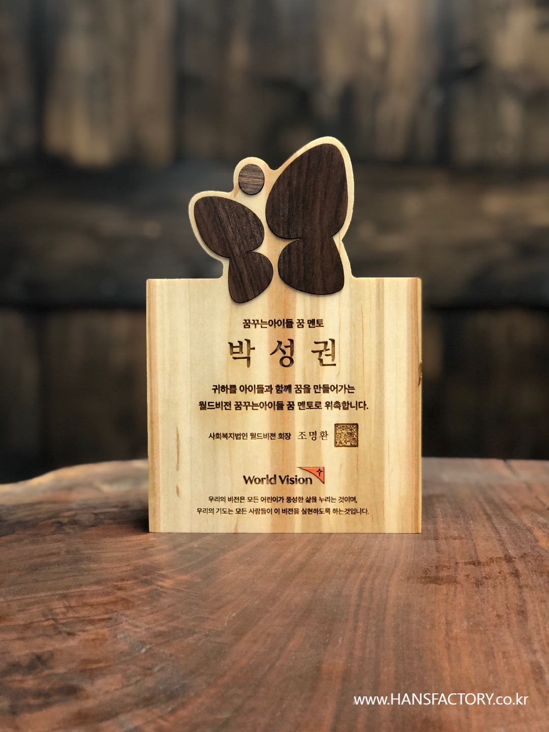 꿈꾸는 아이들 꿈 멘토, 목재 위촉패 제작 for 월드비전 World Vision & 박슬기