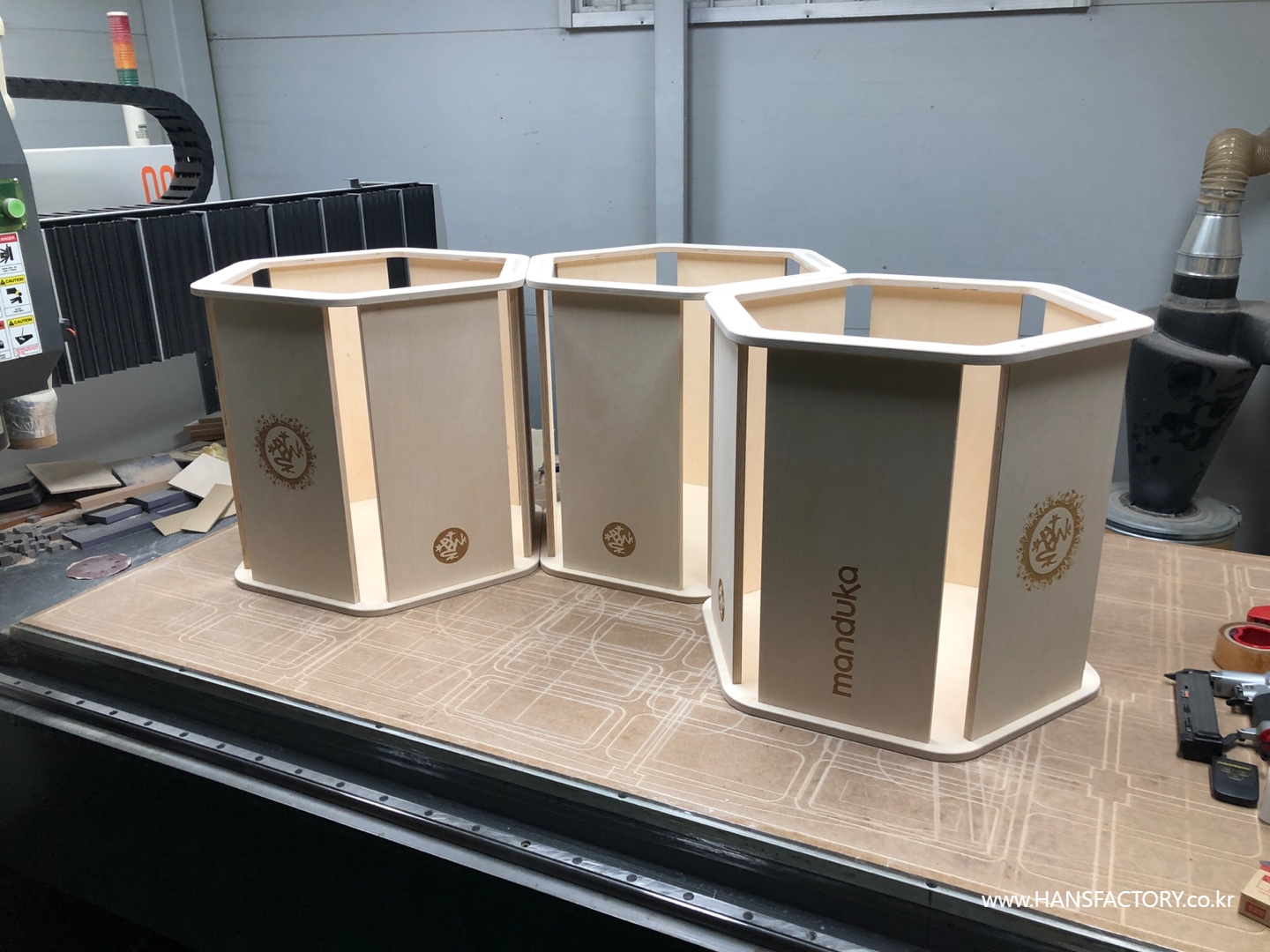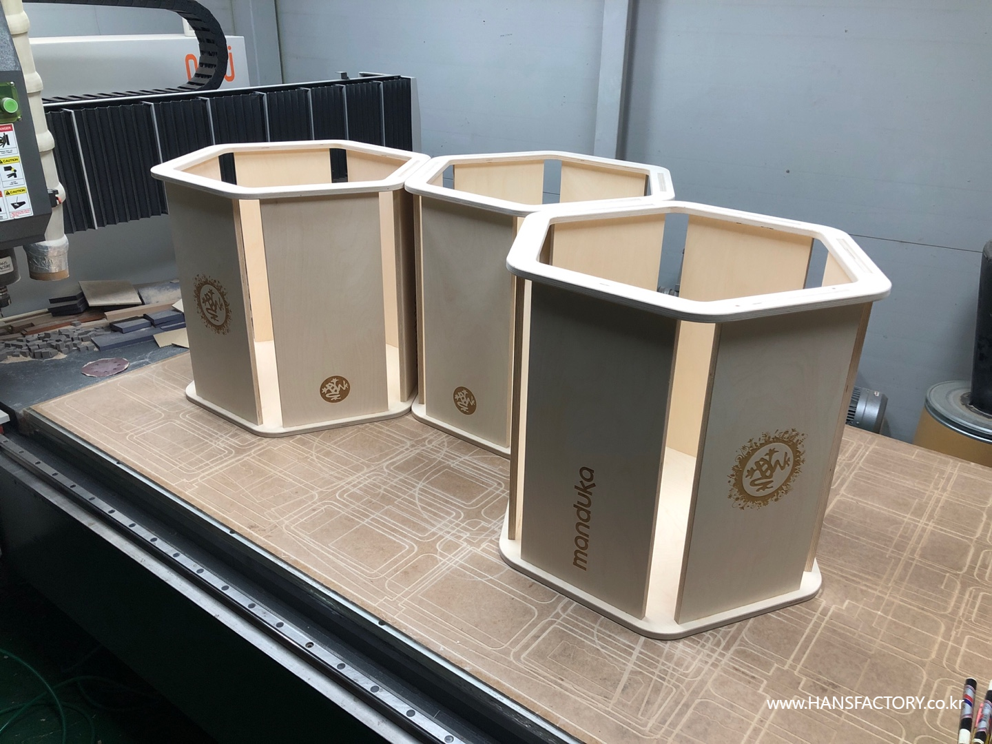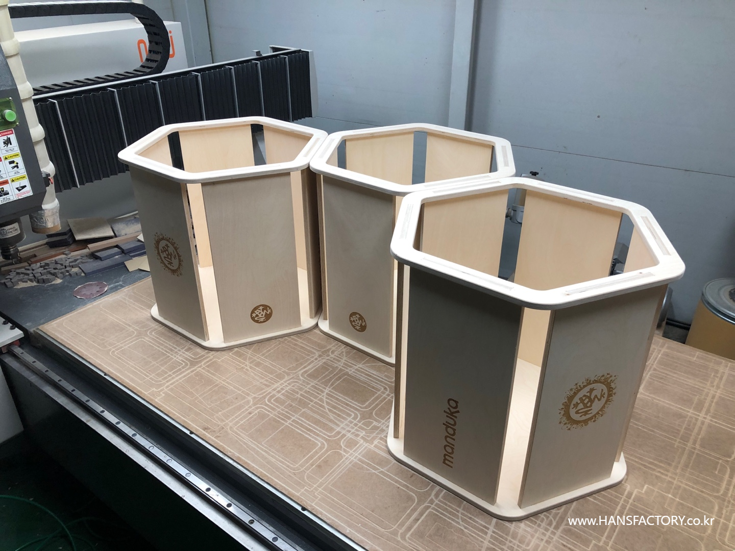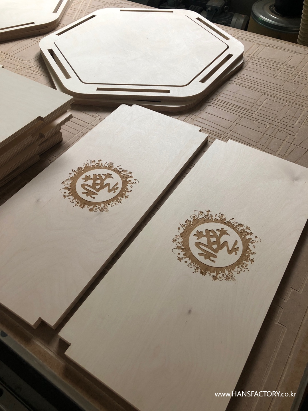 자작나무 판재를 CNC 가공으로 정밀하게 재단+가공해서