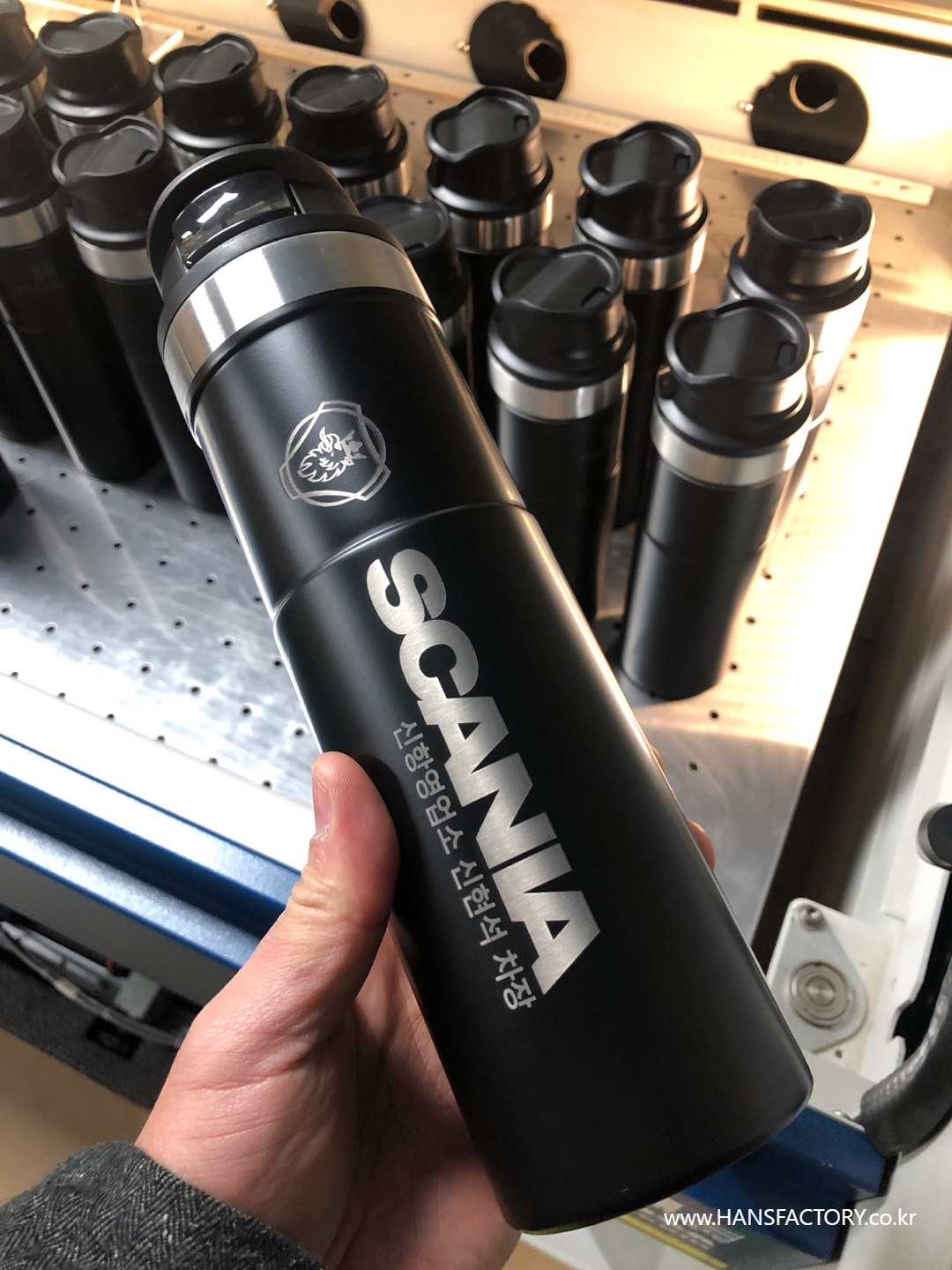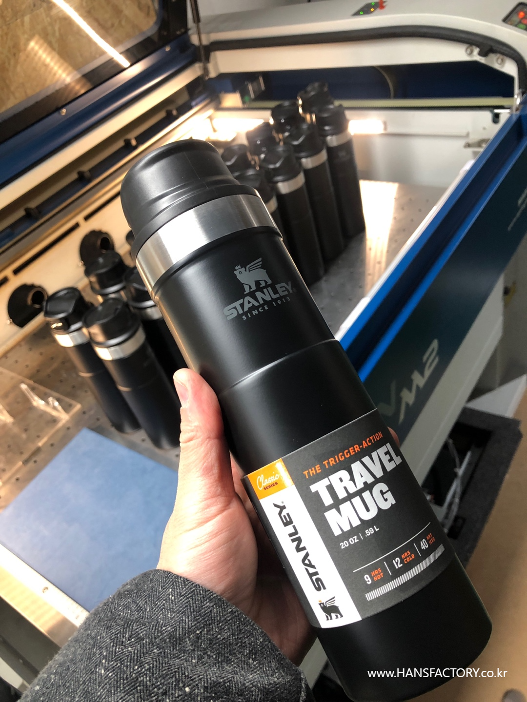 스텐리 트레블 머그 제품에 로고를 각인하는 미션!!